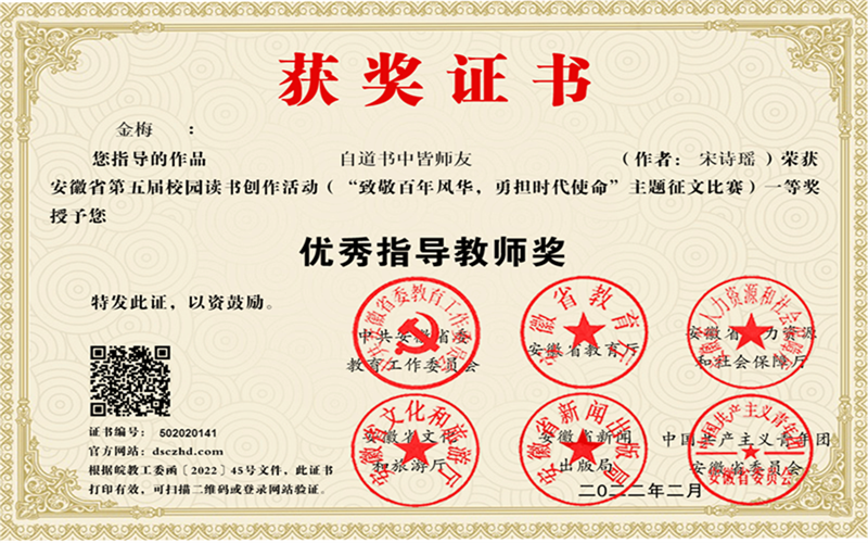 安徽省第五届校园读书创作活动优秀指导老师奖获得者 金梅