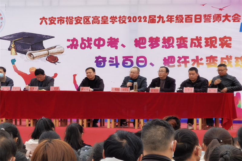 六安九中副校长霍朝晖受邀出席高皇学校2022届九年级百日誓师大会并作了精彩报告。