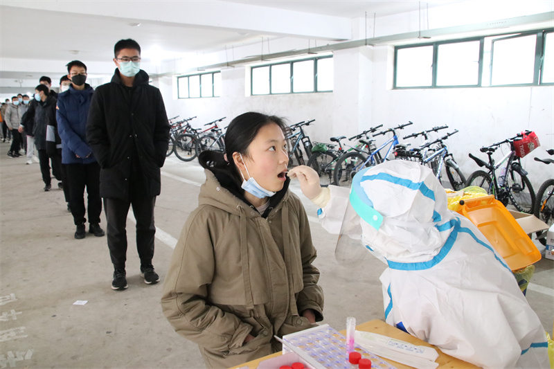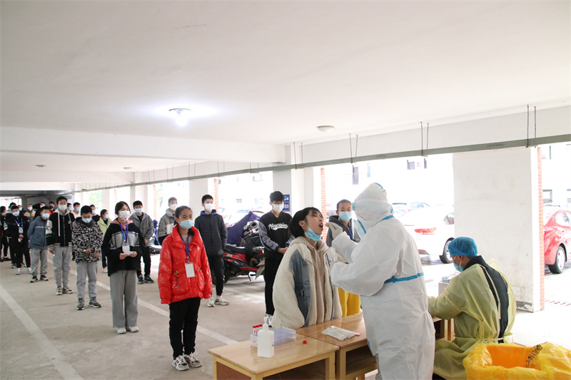 为提高工作效率,确保检测工作顺利开展,学校精心组织,制定预案,细化流程,从核酸采样到后勤保障分工明确。此次核酸检测共设5个检测点,每个检测点分别设置等候区、排队区及采样区。采样现场实行单口进入、单口离开。采样结束后,师生迅速离开检测点。在检测过程中,全体师生佩戴口罩,按时到位,自觉按照间隔一米的距离排队,整个流程操作规范,采样工作有序进行。截止15:30,学校顺利完成5000余名师生的核酸检测采样工作。