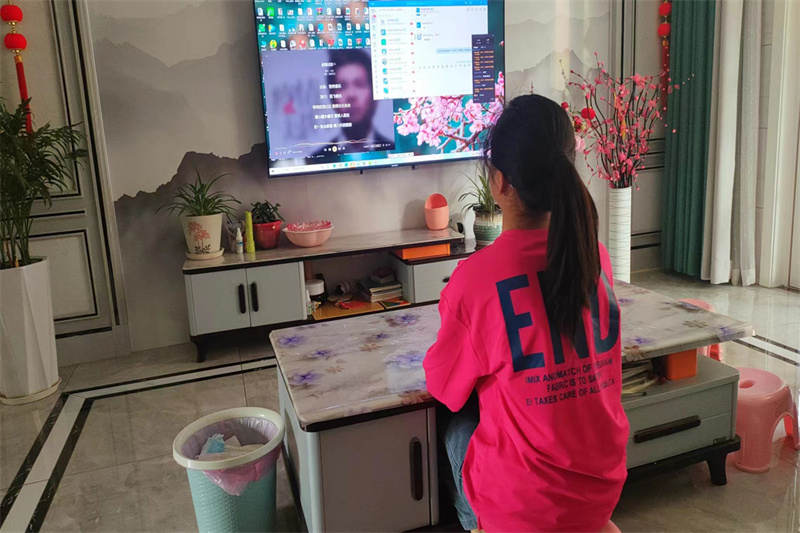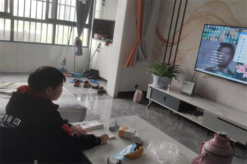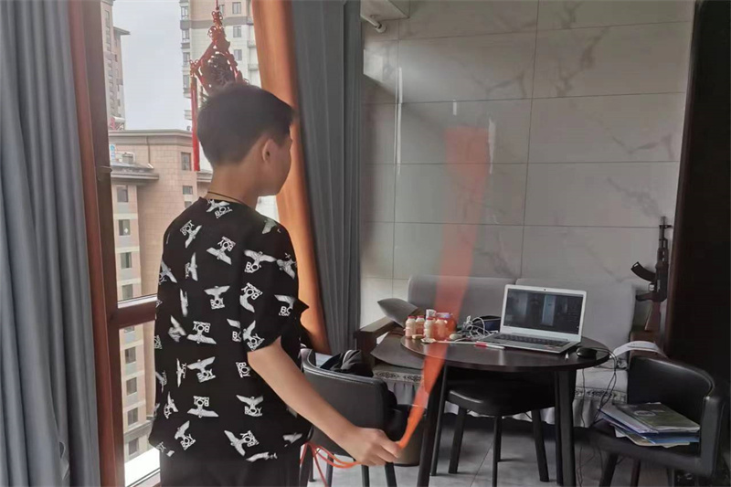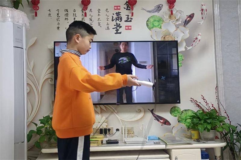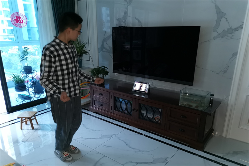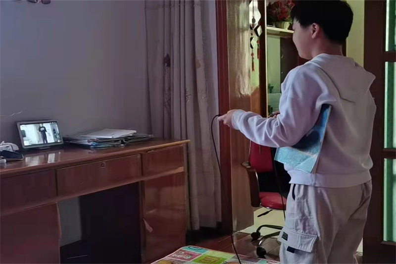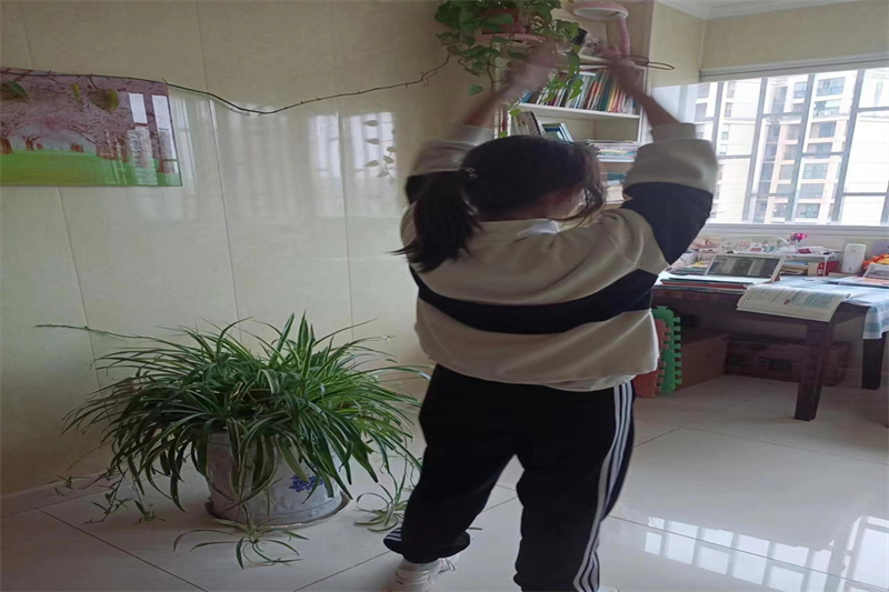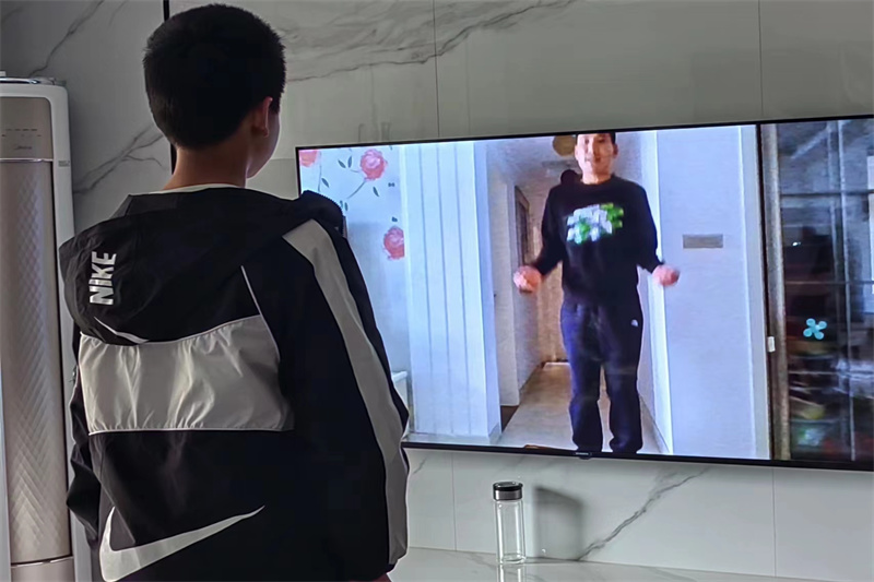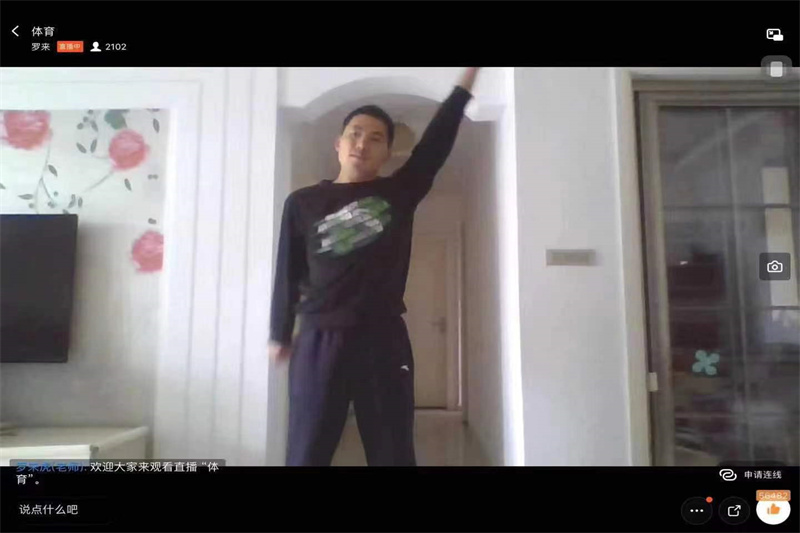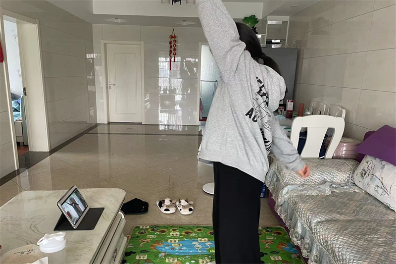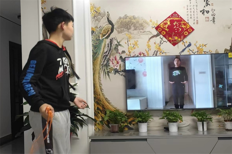居家训练,健体抗“疫”。为了提高学生的身体素质,保障学生的身心健康,六安九中体育组的老师们妙招百出,拟定“居家不停练”系列线上体育教学计划,布置适合居家训练的运动项目,并通过钉钉平台打卡的方式,督促同学们按质按量完成居家训练的任务,提高居家训练的效果。居家天地虽小,但九中学子们“宅家”锻炼身体不停步,个个争做运动小达人。阳台上的课前拉伸、客厅中的体能训练、卧室内的平板支撑、院落里的跳绳和广播操……在不同的地方,在屏幕前,同学们热火朝天地上起了“不一样的体育课”,线上体育课和线下一样朝气蓬勃、丰富多彩。4月15日,罗来虎老师在线上指导学生跳绳,让孩子们身居斗室,利用身边器材,化身健身达人,落实每天“运动一小时”的目标。在体育组老师们的指导下,同学们的动作更加规范,运动质量不断提升。“线上线下联动+教师悉心指导+学生认真训练+家人有力配合”的线上教学模式,让老师、学生和家长之间加强了交流沟通,加深了彼此了解,有效地保证了体育课教学的质量;“不一样的体育课”展现了九中学子积极向上的精神风貌,弘扬了强身健体、健体抗“疫”的正能量。