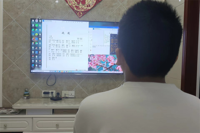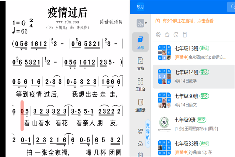“音”你心动,以艺战“疫”。疫情当前,六安九中音乐组的老师们纷纷化身音乐主播,直播授课,用音乐的力量,抚慰学生的心灵。为了让线上教学变得生动有趣、引人入胜,音乐组的老师们认真备课,结合实际,选取了内容有趣、思想健康、深受学生喜爱的曲目。“等到疫情过后,我想出去走走,看山看水看花看亲人朋友……”,4月14日下午,何映月老师教学的抗疫歌曲《疫情过后》,透过云端,传递着疫情中温暖、坚定的力量。同学们沉浸在音乐的世界里,一任美妙的乐声如汩汩清泉流过心间,坚定了战胜疫情的信念,驱散了心中的阴霾,抚去了焦躁与不安。