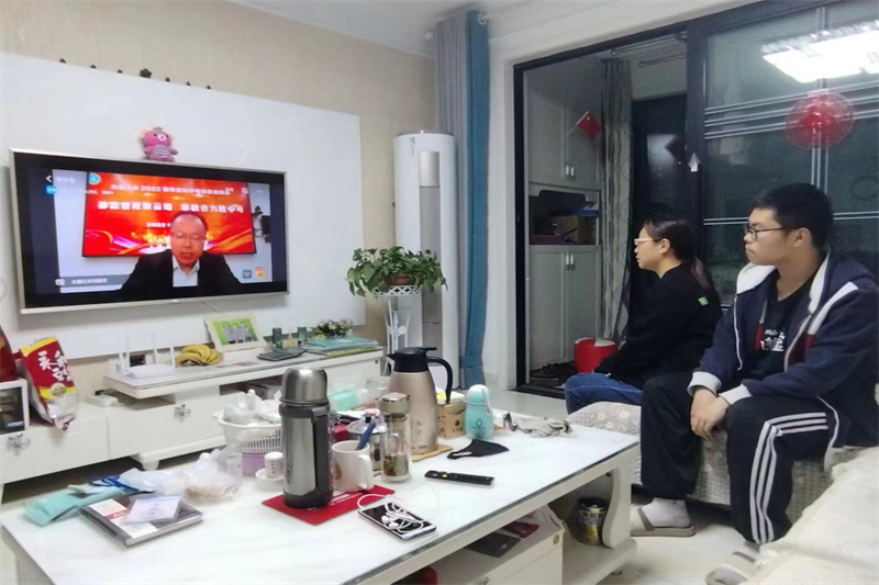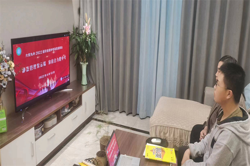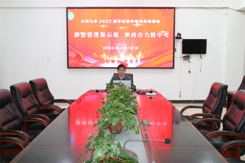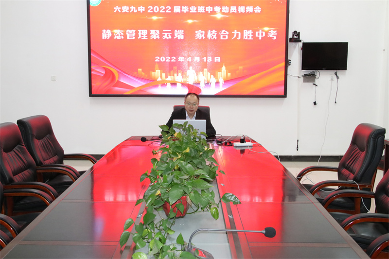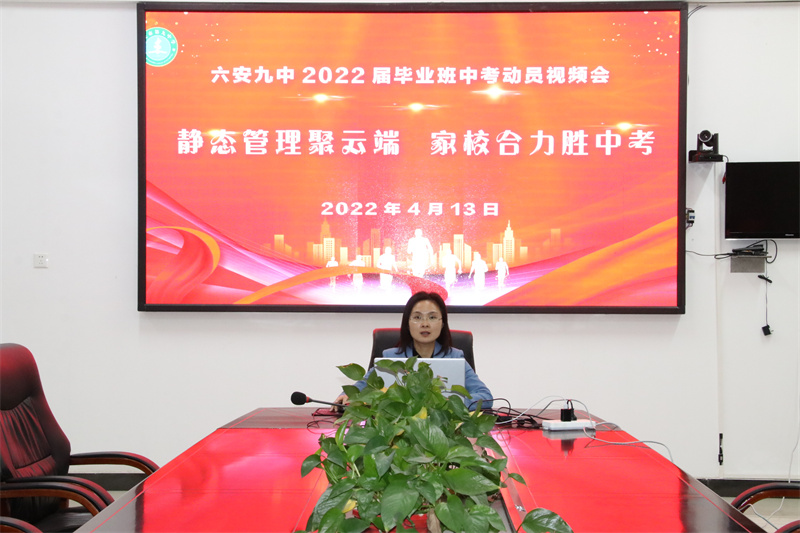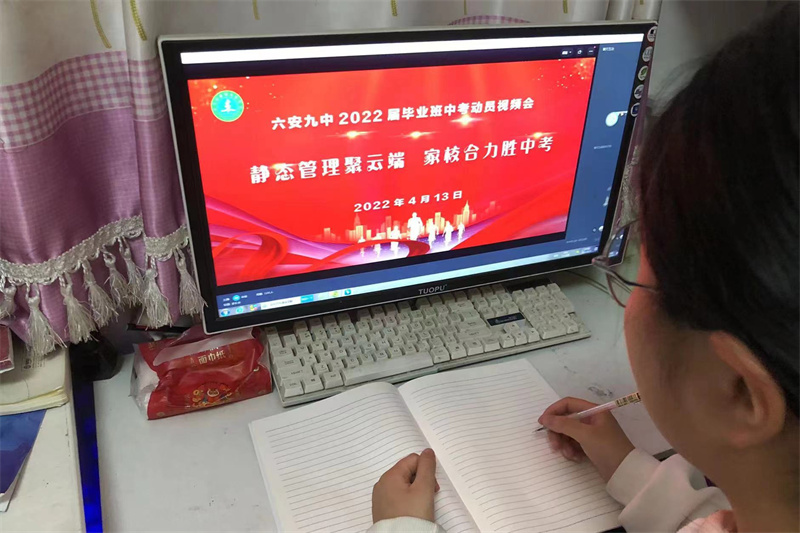 为了进一步做好毕业班的线上教学工作,教育学生遵守静态管理的各项规定,引导学生树立战胜疫情的信心,坚定毕业班师生及家长奋力拼搏、决胜中考的决心,4月13日,六安九中召开以“静态管理聚云端,家校合力胜中考”为主题的2022届毕业班中考动员视频会。毕业班全体师生及家长共3000余人齐聚云端,共话线上复习备考大计,凝聚磅礴的教育合力,一起发出决胜中考的铮铮誓言。
