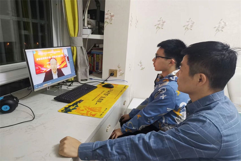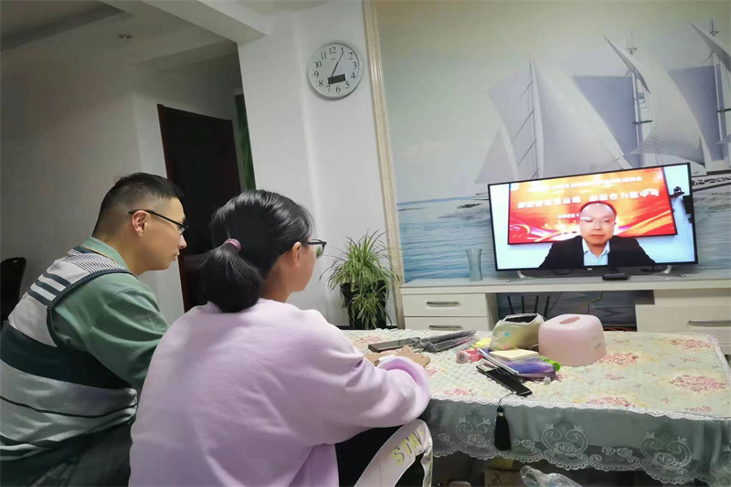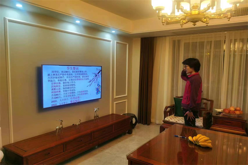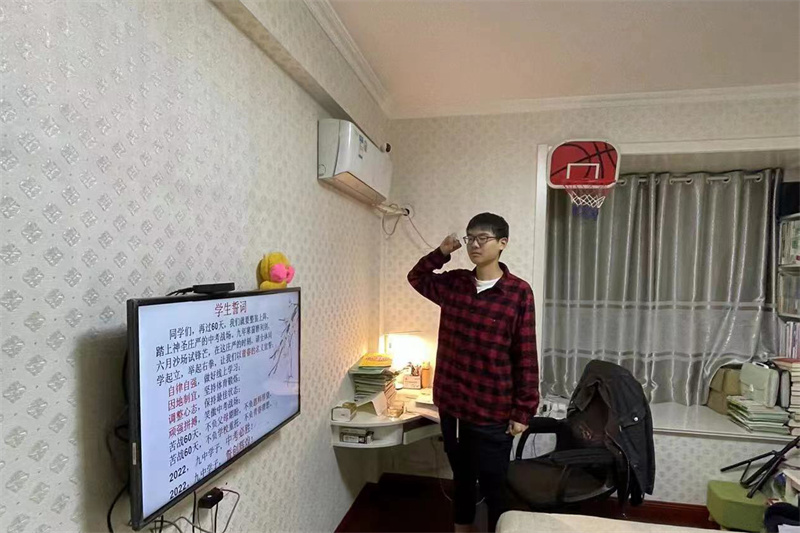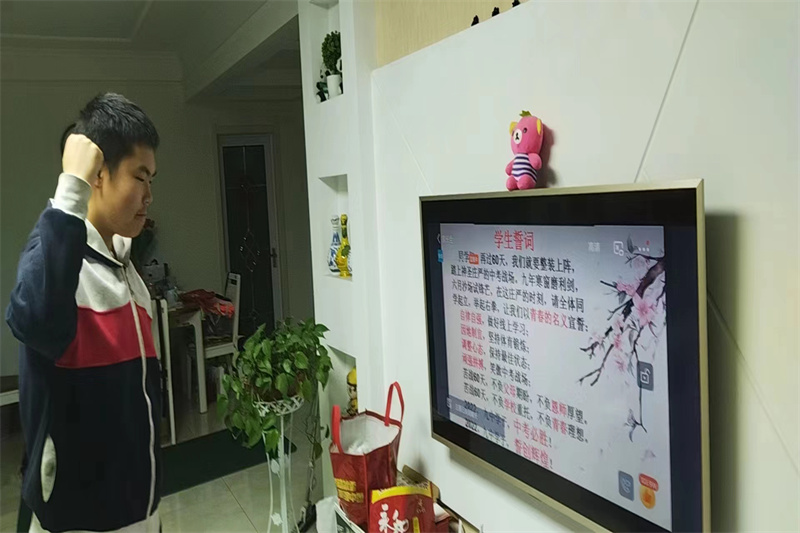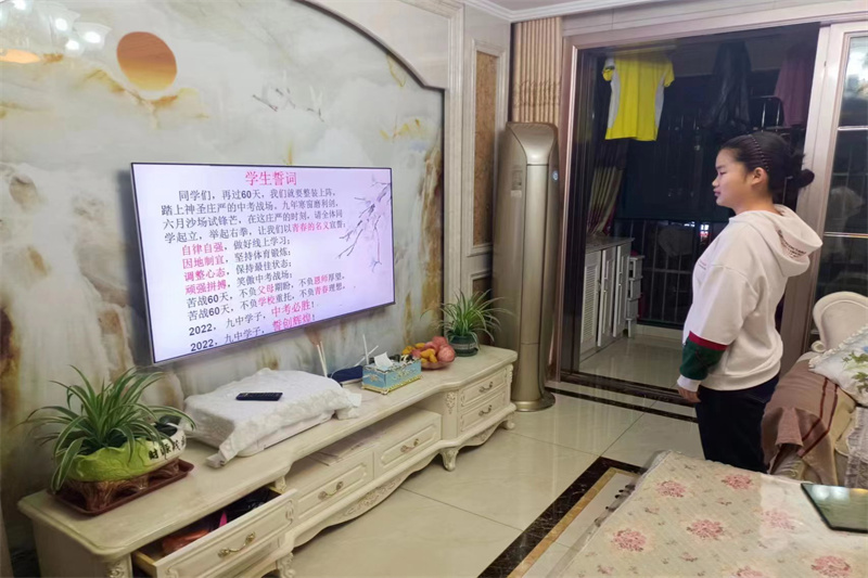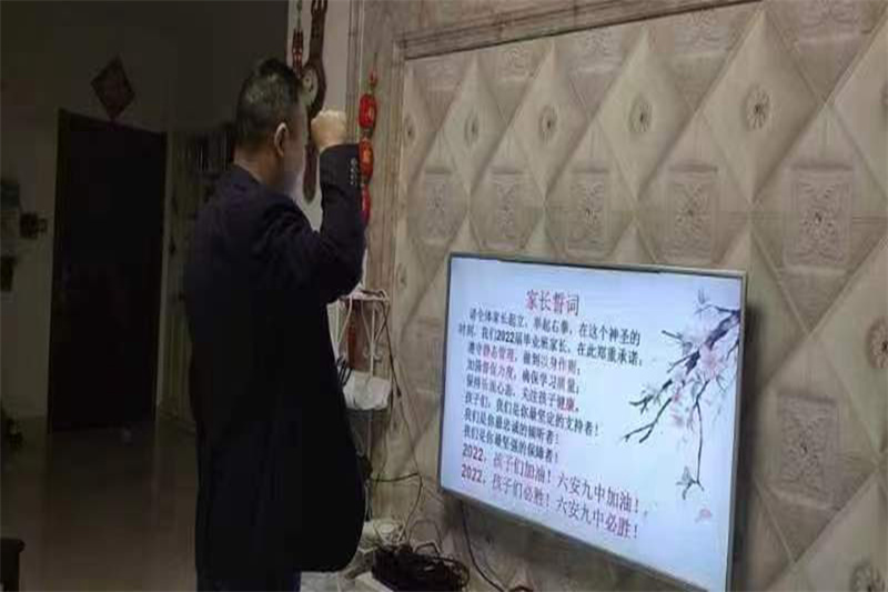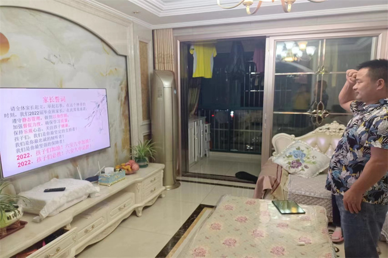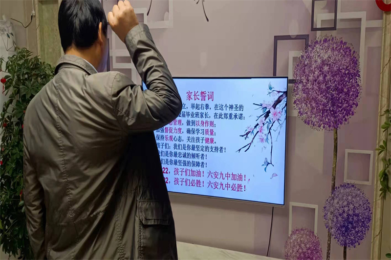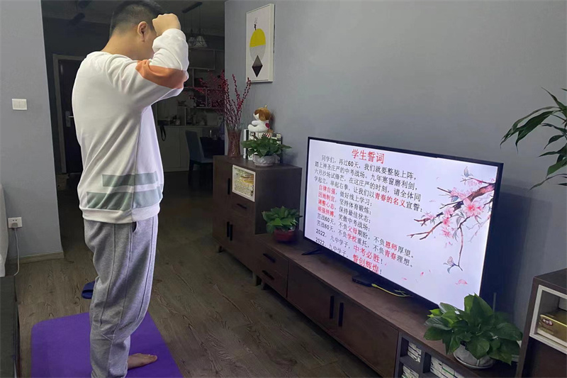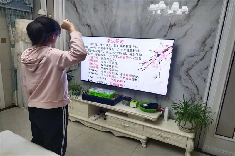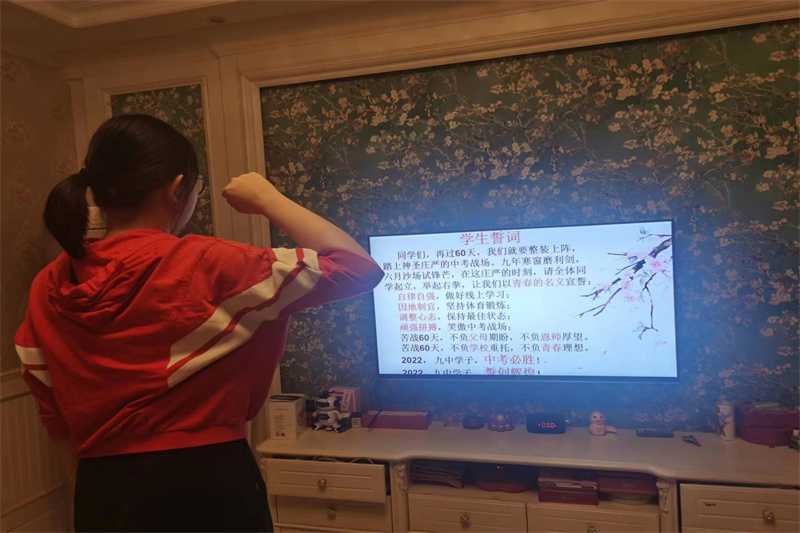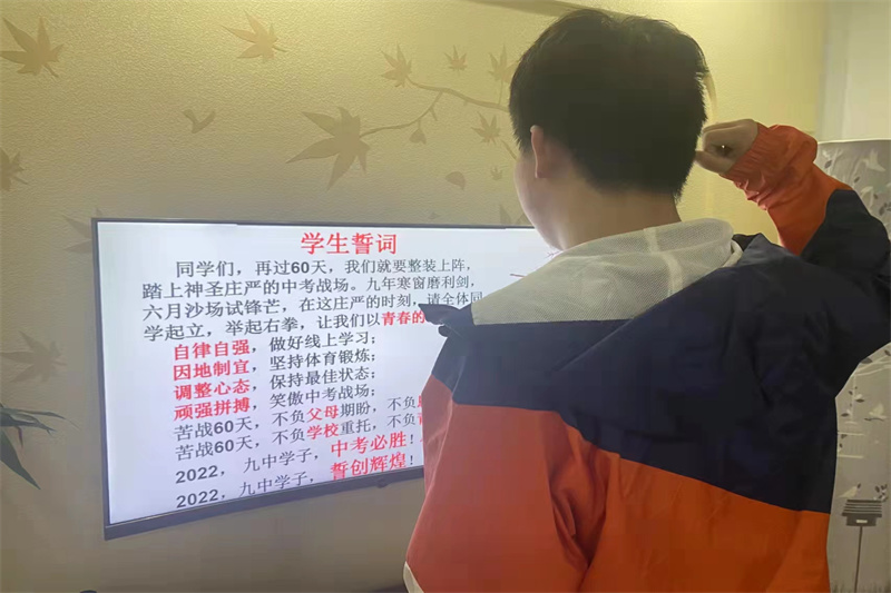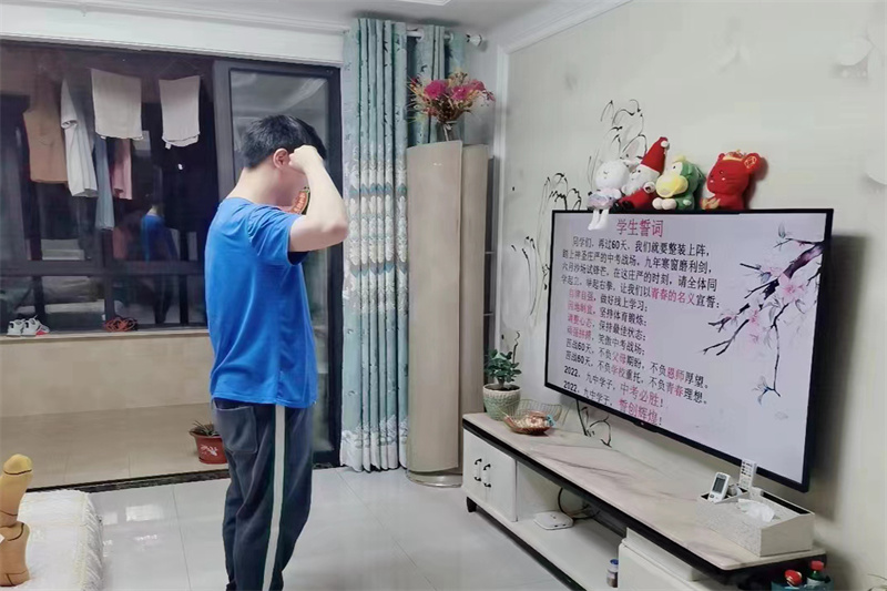 视频会的最后,九年级年级部主任刘伦胜分别带领全体毕业班教师、家长和同学宣誓,喊出大战中考前的雄心壮志。铮铮誓言,是圆青春梦想的动员令,扬人生志气的进军号,是表必胜豪情的奏鸣曲。刹那间,振奋人心的豪言壮语响彻云端,久久回荡。