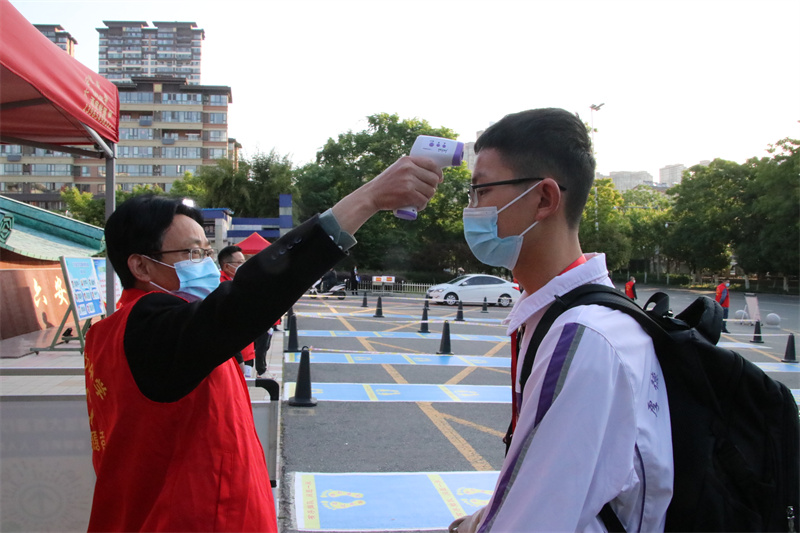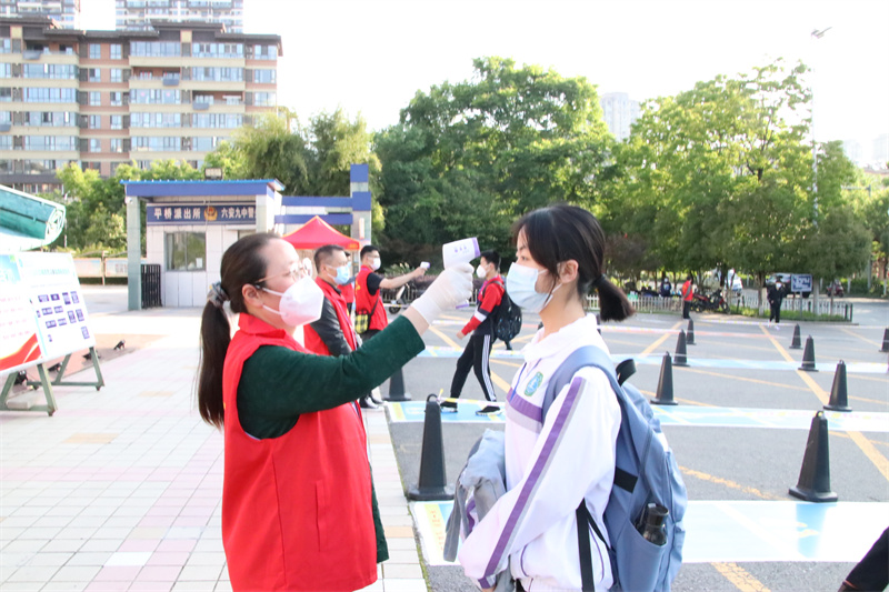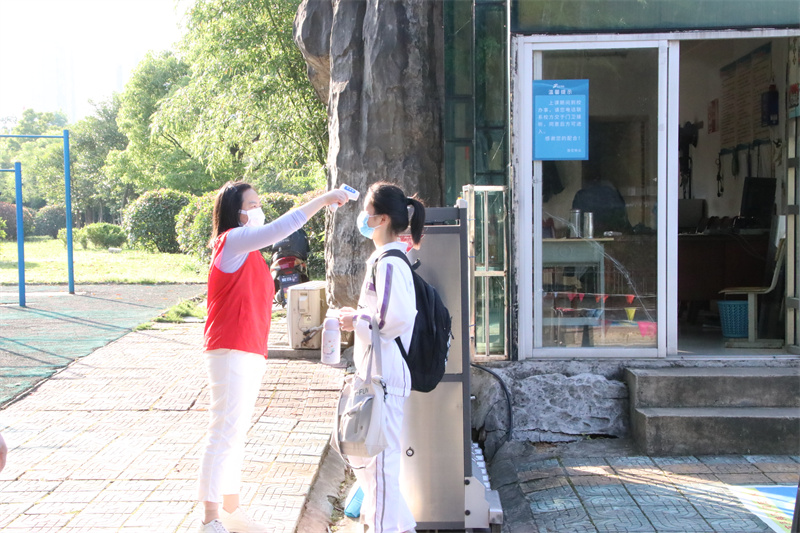 早上6:20,在学校大门口、教学楼、班级教室、隔离区……值日教师、安保人员、各个岗位的教师、志愿者团队均已就位,大家严阵以待,积极做好学生错峰入校的准备工作。“欢迎你回来!”“看到你很高兴!”……在学校领导和执勤教师的组织和引导下,同学们着装整齐、佩戴口罩、背着书包,有序地在校门口按间隔排队,经过体温检测,进入校园,走向班级。进入班级前,各位班主任再次对同学们进行体温检测,并对每个学生的体温状况做好记录,及时掌握学生动态、健康情况,实行“日报告”“零报告”制度。错峰入校,安全有序。整个过程一丝不苟,文明高效。各个岗位的老师分组进行,各司其职;现场秩序,有条不紊,为学生们安全返校复学筑起了第一道防线。