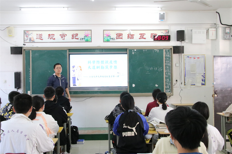 为欢迎同学们顺利返校,尽快适应返校复学的线下学习模式,各位班主任积极上好复学第一课,用抗击疫情的鲜活教材,加强爱国主义教育、生命教育、信念教育、科学教育、道德教育。复学第一课上,各班班主任还对同学们进行防疫心理健康培训,倾听同学们在疫情期间的心声,并通过互动交流等方式,引导同学们如何正确面对困难和挫折,积极调整学习和生活状态,培养阳光、乐观的健康心理,使他们坚定理想信念、涵养家国情怀,敬畏生命,砥砺前行。