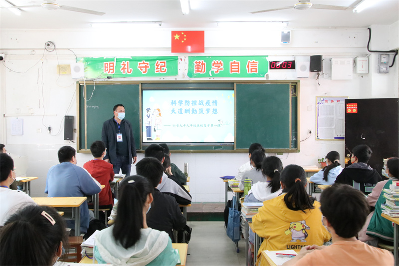 五月的鲜花,因遇见更加美丽;沉寂的校园,因复学充满生机。5月4日上午,经过学校精心部署,认真准备,六安九中初三学生顺利、有序返校复学,从线上学习模式切换回课堂学习模式,同学们怀揣着梦想和期盼回到了熟悉的校园,大美九中又恢复了往日的欢声笑语。