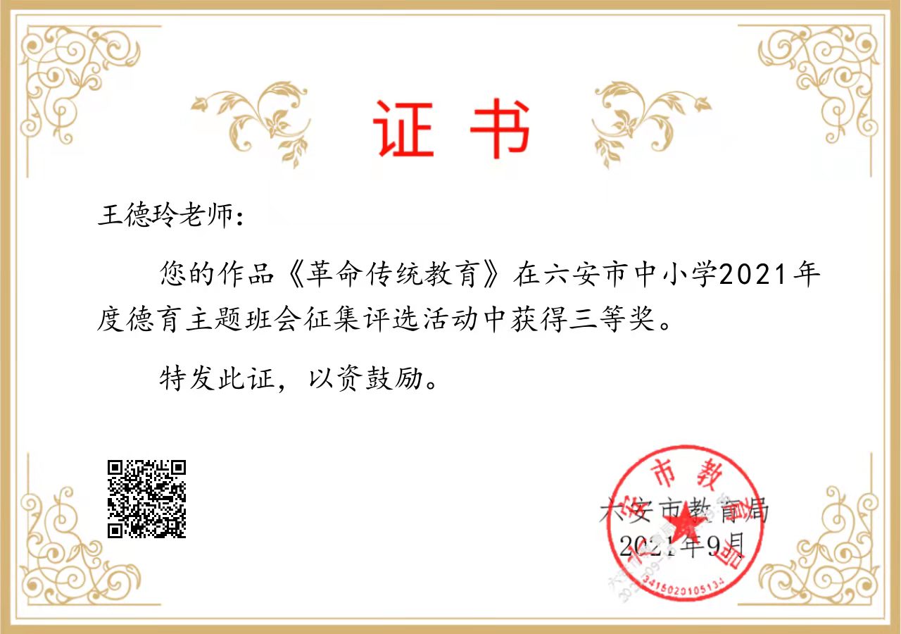 青枝花尽育梅子,正是清和好时节。在2021年六安市义务教育《道德与法治》优秀教学微视频、“学科德育精品课程”、“德育主题班队会”和“德育典型案例”评选中,六安九中喜获佳绩。