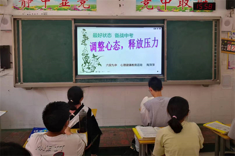 为有效缓解毕业班学生考前心理压力,调整他们的心理状态,增强他们决胜中考的信心,让他们以最好的状态备战中考,5月21日,六安九中举行主题为“调整心态,释放压力”的中考考前心理健康教育专题讲座。