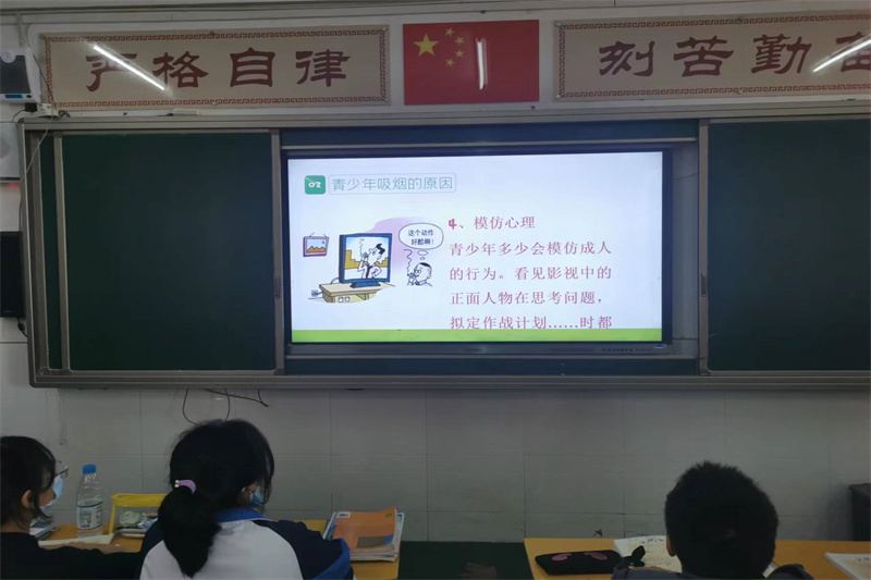 召开无烟主题班会。校团委和少工委组织各班级召开“吸烟危害健康知识宣讲暨师生共禁烟”主题班队会。班队会上,老师们通过播放视频、PPT讲解等形式,深入浅出地向同学们讲解了世界无烟日的由来、吸烟与二手烟对身体的危害、烟草中的有害物质以及对环境的影响等内容,使同学们深刻地了解到吸烟对健康的危害。
