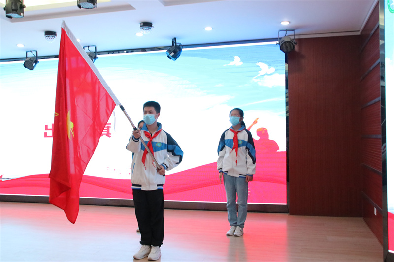 少先大队辅导员王德玲带领全体队员们呼号,伴随着庄重的退旗曲,“红领巾奖章”颁章启动仪式圆满结束。