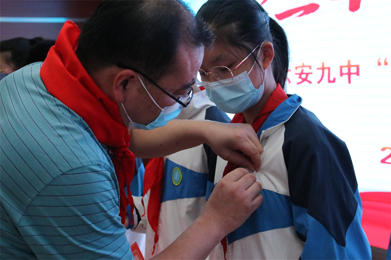 红心永向党,争章展风采。小小的奖章汇聚大大的能量,在党的带领下、在红领巾奖章的激励下、在星星火炬的照耀下,九中少年定会从小立志向、修品行、练本领,永远感党恩、听党话、跟党走,为实现中华民族伟大复兴的中国梦时刻准备着。学校少工委将持续推进“红领巾奖章”争章活动,构建人人可行、天天可为、阶梯进步的“红领巾奖章”评价激励体系,促进少先队员全面协调地发展,让红色基因薪火相传。(文:胡克云 图:游捷)