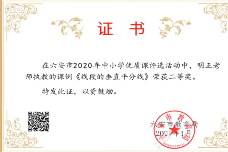 未显凤 区先进教育工作者、师德先进个人、优秀共产党员,参加市初中数学优质课大赛获一等奖,执教的课例获省级“优课”,多次获得区教学成果奖。