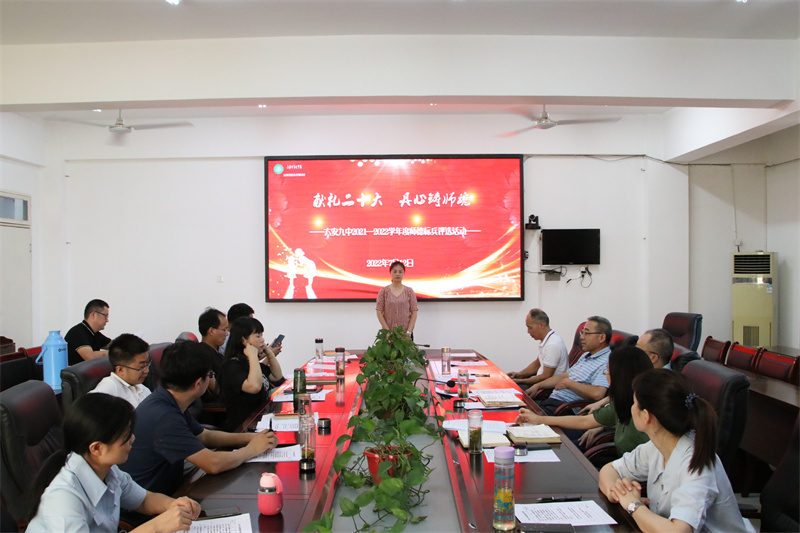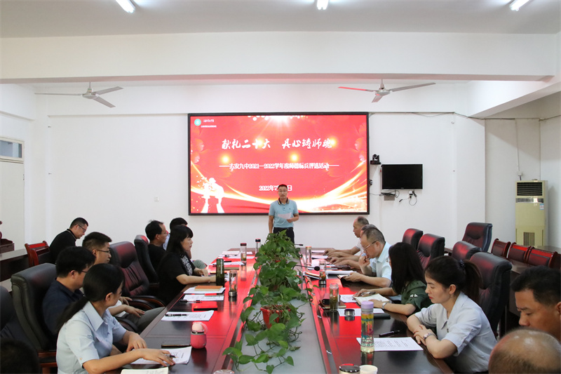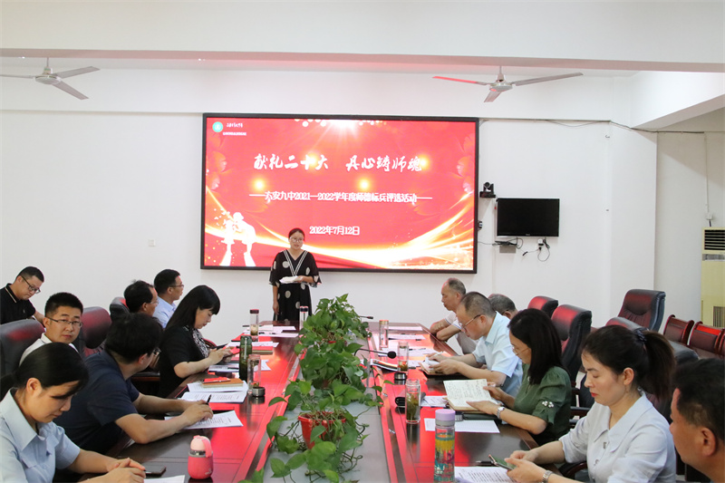 为了迎接党的二十大胜利召开,弘扬师德风范,提高师德修养,展现学校教师的良好形象,激励教师在建设成幸福和谐的现代化精品学校之路上再立新功,7月12日,我校举行2021——2022学年度“师德标兵”评选活动。来自18个学科组的18名优秀教师进行了师德演讲,学校领导班子和各教研组组长担任评委。