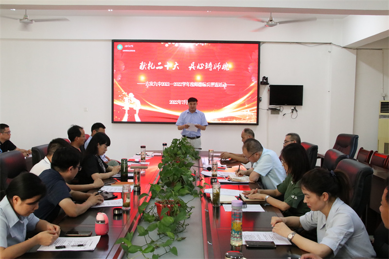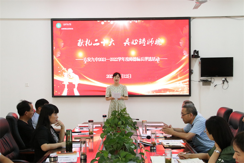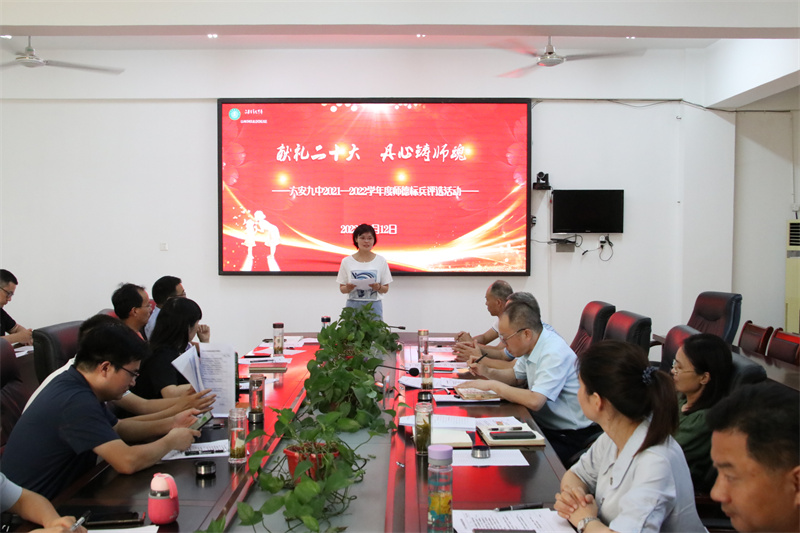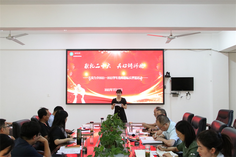 评委们秉承公平公正公开的原则,进行现场评分。最终,推选出翁仕林、邹葳、翟利萍3位老师申报六安市“师德标兵”“师德先进个人”,王莉、苏娟娟、余俊、王政4位老师申报裕安区“师德标兵”“师德先进个人”,其余11名教师为六安九中2021——2022学年度“师德标兵”。