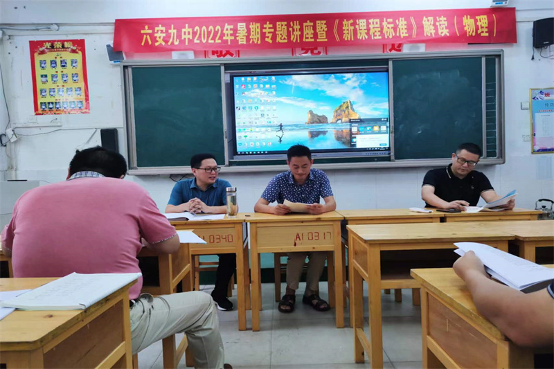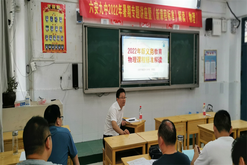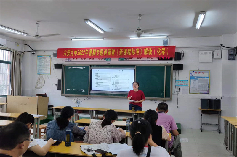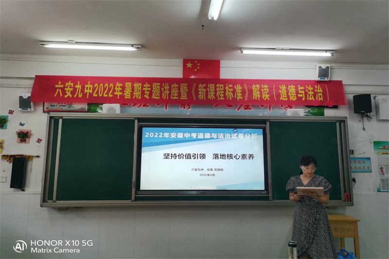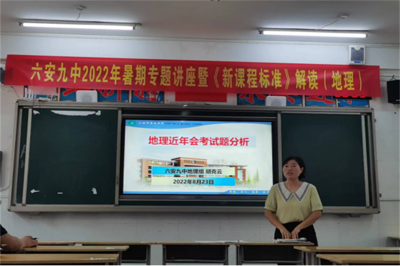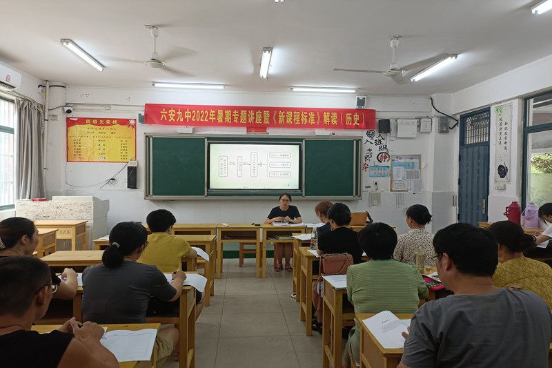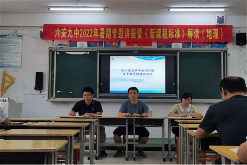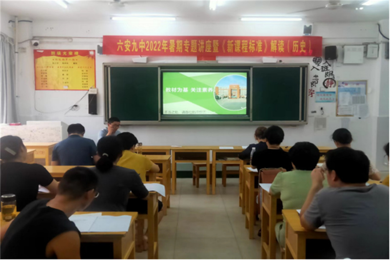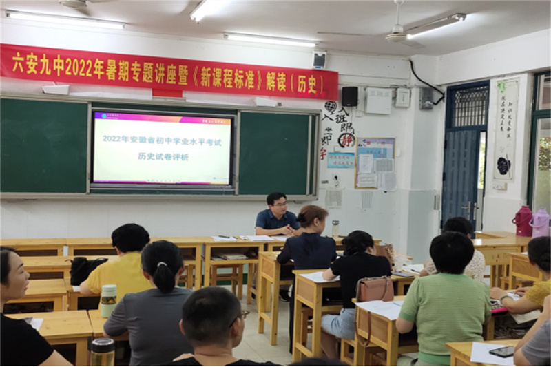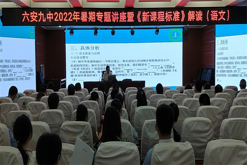 榴实饱满处暑日,教师蓄能正当时。为进一步落实《义务教育课程标准(2022版)》的理念,紧跟新课标改革的步伐,全面提升我校教师教学水平,抓好中考备考工作,促进教师专业化发展,8月23日上午,六安九中于暑期政治理论业务学习期间,特邀请省城名师开展了中考备考经验交流和新《课程标准》解读专题讲座活动。此次活动与会人员众多,共设语文、数学、英语、道德与法治、历史、物理、化学、生物、地理九个分会场。
