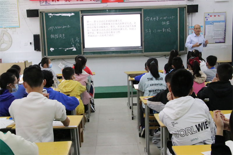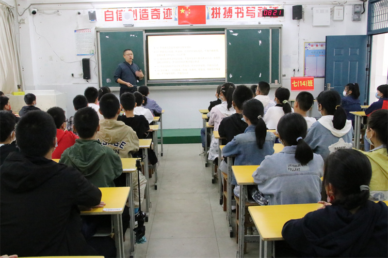 七年级新生“开学第一课”——入学教育主题班会,在各班教室同时举行。班主任们结合校情和学生年龄特征,发挥各自专长,谆谆教导。同学们一双双求知的眼睛透露出新鲜和兴奋,他们了解了学校的校史沿革、办学理念、师资优势,更激发了热爱学校、为校争光的归属感和荣誉感;受到了安全教育和纪律教育,明确了学校令行禁止的红线;受到了文明礼仪教育,真切感受到讲文明、重礼仪的具体要求。入学第一课,帮助孩子们在初中阶段,从品德上扣好了第一粒扣子,从思想上理齐了领子,从行动上撸起了袖子。