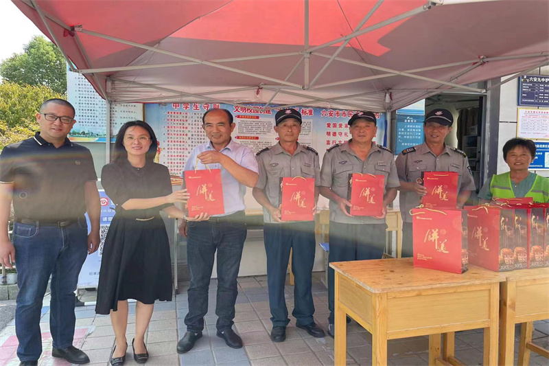 此次慰问,送去的不仅仅是一块块精致的月饼,更送去了学校领导对全体安保和后勤人员们的深切关怀,让大家深深感受到了六安九中大家庭的脉脉温情。大家纷纷表示,一定不会辜负学校领导的重托,站好每一班岗,做好后勤保障和疫情防控工作,保障全校师生的健康安全。