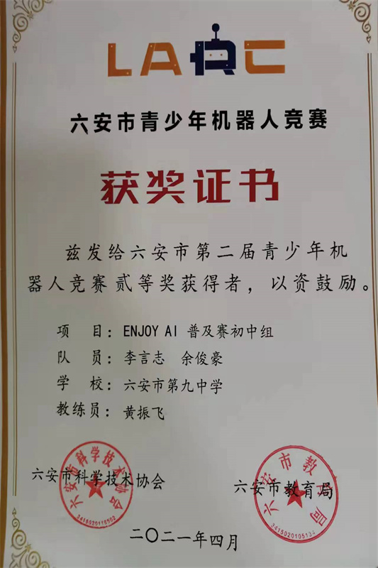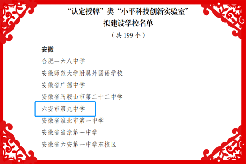 近日,共青团中央公布2022年度“小平科技创新实验室”示范学校名单,六安九中成功入选“小平科技创新实验室”建设学校,成为六安市唯一一所申报成功“小平科技创新实验室”建设学校的初中。