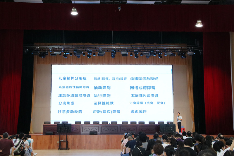 讲座中,王昆结合多年从业中遇到的典型案例,从症状表现、诊断标准、评估手段等方面向老师们讲解常见的儿童青少年心理健康问题与识别方法;讲述了儿童精神分裂症、情感(抑郁、双相)障碍、孤独症谱系障碍、儿童器质性精神障碍、抽动障碍、网络成瘾障碍、注意多动缺陷障碍、品行障碍、分离焦虑、强迫障碍等10余种常见的儿童青少年精神心理疾病的表现以及被确诊后的反应,帮助老师们从多方面、多角度看待和认识儿童青少年心理健康问题。