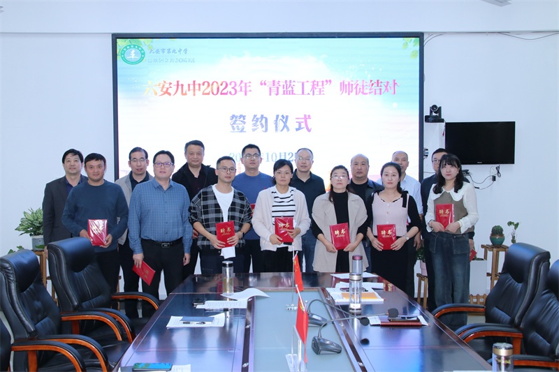 薪火永相传,最美是青蓝。为促进青年教师快速成长,发挥骨干教师的模范带头作用,增进新老教师之间的专业交流与学习,充分发挥优秀教师的“传、帮、带”的精神,使青年教师很快脱颖而出成为学校的骨干,从而打造一支高素质的教师队伍。10月25日,六安九中举行2023年 “青蓝工程”师徒结对仪式。本次活动由黄文海副校长主持。