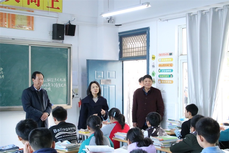 六安九中党支部书记、校长李艳率领校支委成员前往六安九中结对共建学校查婆店学校。在狮子岗乡中心学校、查婆店学校负责人的引领下,六安九中支委一行参观了查婆店学校的校园环境、校园文化,了解了查婆店学校的质量提升和教学教研等情况,关心慰问了我校在查婆店学校支教的教师,走进教室亲切看望了查婆店学校的学生。