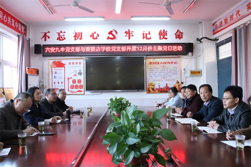 为深入开展学习贯彻习近平新时代中国特色社会主义思想主题教育,大力传承弘扬“四下基层”优良传统,推动结对共建工作深入开展,引领乡村教育优质发展,11月23日,六安九中党支部开展“弘扬‘四下基层’优良传统,引领乡村教育优质发展”主题党日活动。