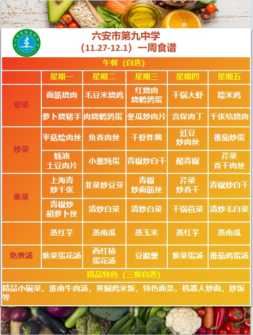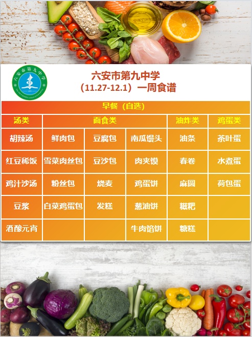 【美好“食”刻】 六安九中第十四周营养健康食谱