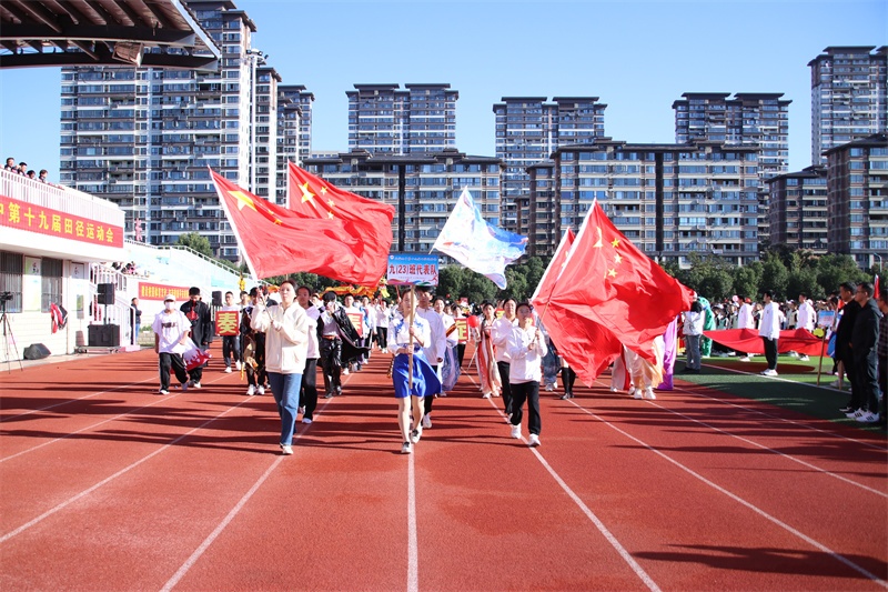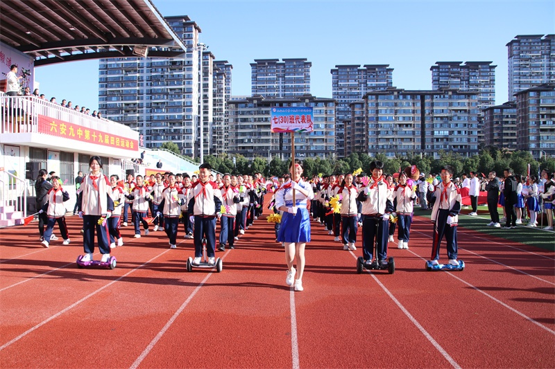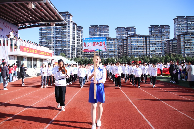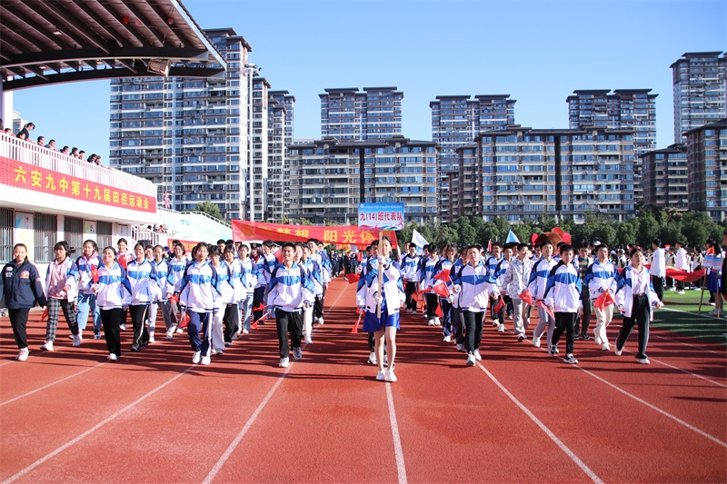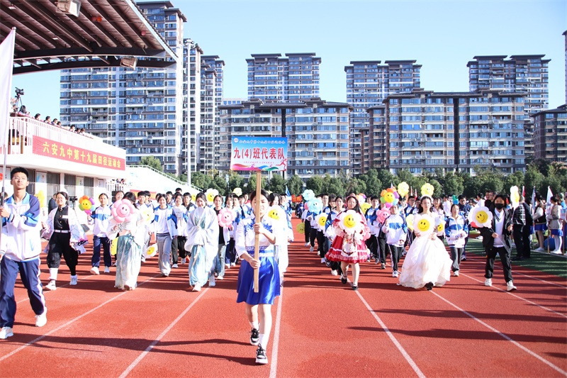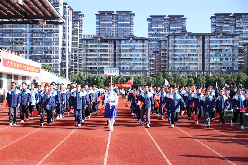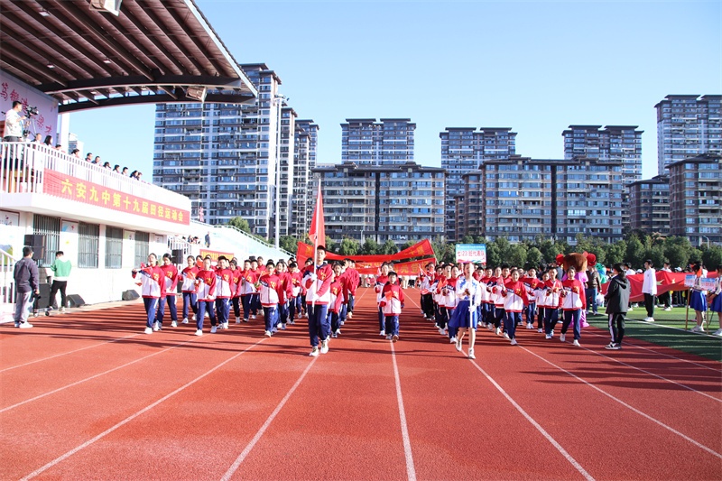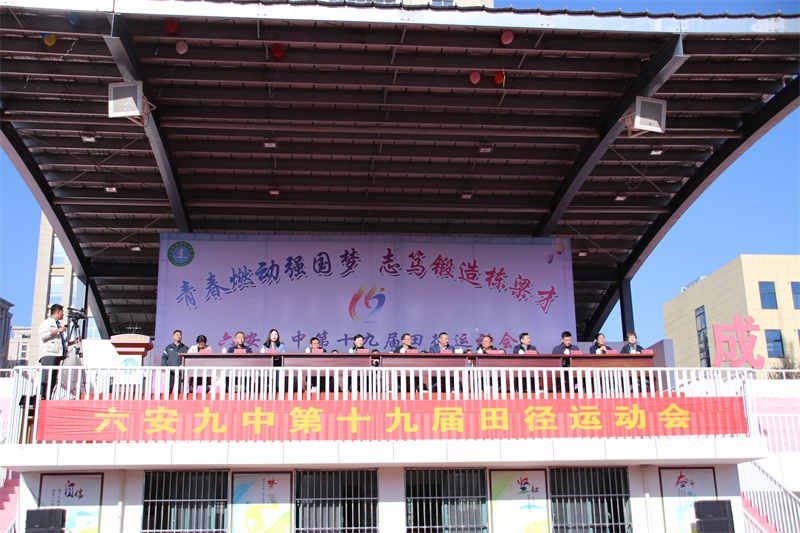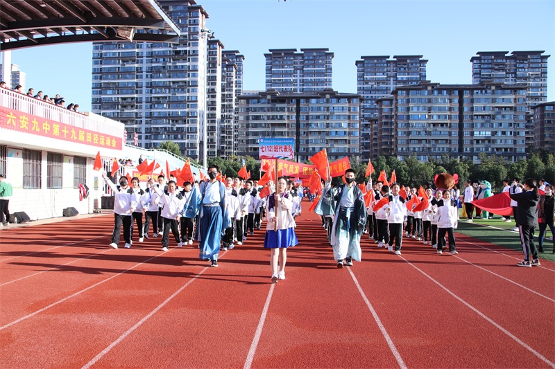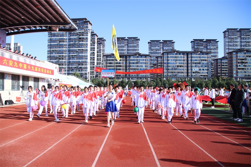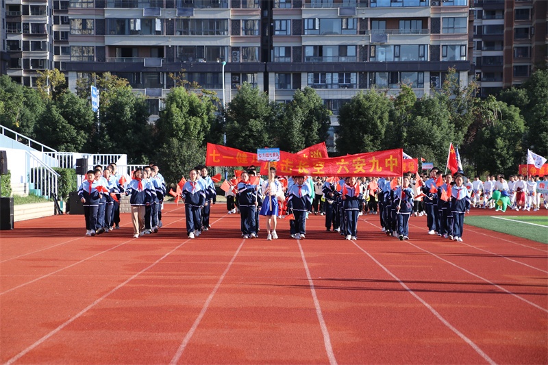 共享亚运荣光,飞扬青春激情。11月2日,六安九中第十九届田径运动会隆重开幕。全校7000余名师生齐聚学校运动场,用青春的姿态和力量,吹响了奋进强国建设、民族复兴的新征程集结号。市教体局党委委员、副局长谢辉,裕安区委常委、副区长王影,区人大副主任刘挺,区政协副主席陶晓婉,区委教育工委书记、区教体局局长王永益,区妇联主席李祝红,团区委书记管娇娇,区委教育工委副书记申祥宏,区委教育工委委员、纪检监察组组长崔宇,区委教育工委委员江兴国,区委教育工委委员、副局长王桂勤,区委教育工委委员、副局长夏煜,区教体局督学陈功有,区委教育工委委员王劲松,区教体局工会主任郑灿灿,区教体局副局长何文英等领导应邀出席开幕式。