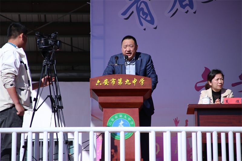 王影在开幕式上发表了热情洋溢的讲话。他代表区委、区政府祝贺学校运动会的盛大举行,高度赞扬了学校一流的育人精英团体和取得的骄人成绩,充分肯定了学校先进的办学理念和独特的育人举措,深情勉励六安九中全体师生要锁定更高目标,矢志攻坚克难,全面提升教育教学质量,持续增强竞争力、影响力、辐射力,让六安九中成为“广出名师、广出人才”的教育高地,成为区域强校、省级名校,奋力开创学校高质量发展的新局面,为建设中国式现代化强国贡献力量。