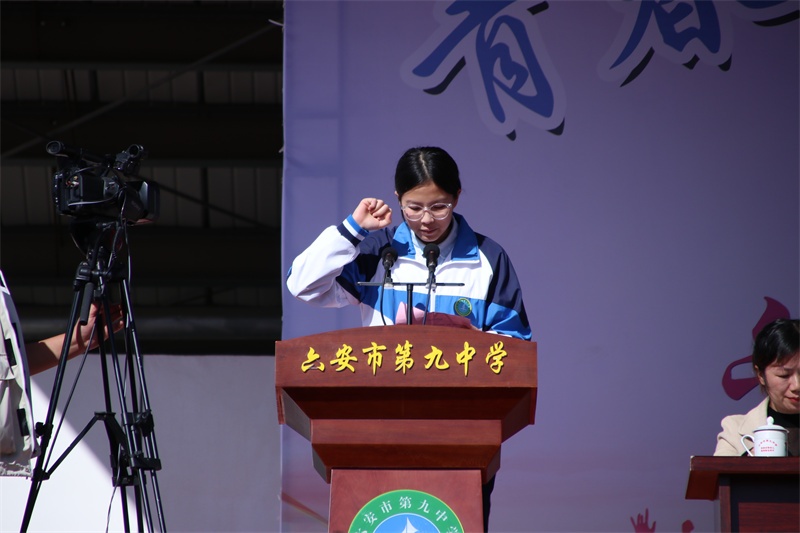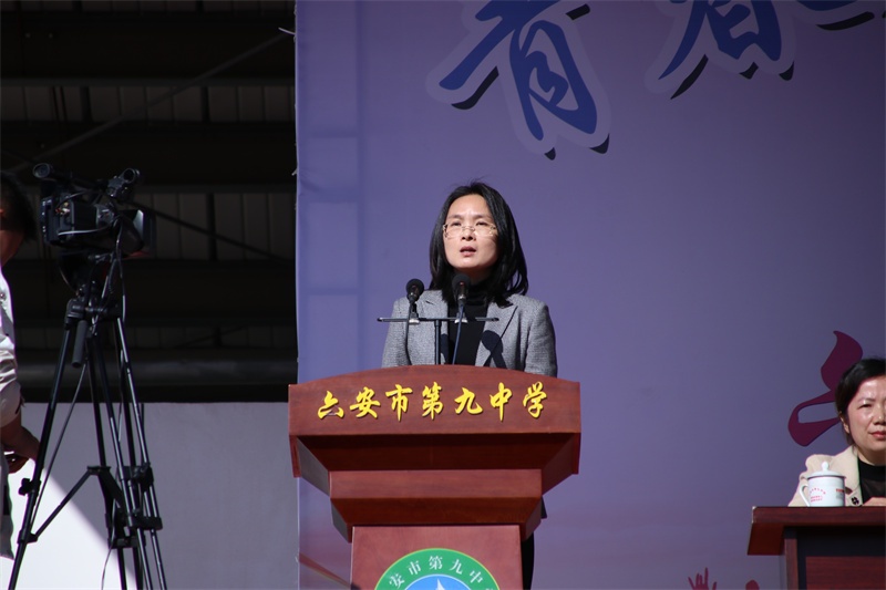 六安九中校长李艳在开幕式上致辞。本届运动会以“青春燃动强国梦,志笃锻造栋梁才”为主题,旨在希望全体九中人,在以“笃志、笃学、笃行、笃礼”为核心理念的“志笃文化”的锤炼锻造中,努力成长为一名有理想、敢担当、能吃苦、肯奋斗的新时代栋梁之才,在以中国式现代化全面推进中华民族伟大复兴的征程中奉献智慧和力量。李艳勉励全体同学:坚定“笃志”,做忠诚报国的栋梁;坚定“笃学”,做勤学善思的栋梁;坚定“笃行”,做行而不辍的栋梁;坚定“笃礼”,做贤良通达的栋梁。她希望:全体师生走好开场,让起跑成为一种气势;全体运动员勇拼赛场,让过程铸就一种气度;全体观众守好看场,让看台成就一种气质;全体工作人员守好安全,让平稳有序贯穿全场。