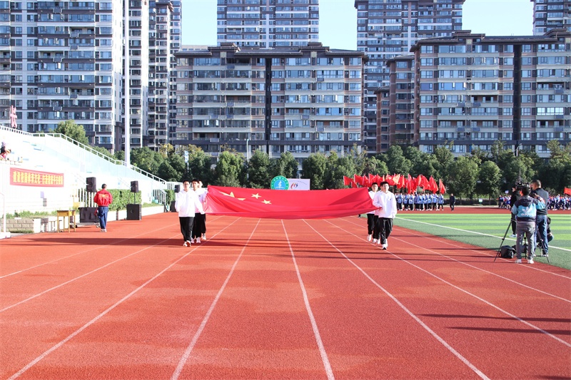 谢辉宣布校第十九届运动会开幕。全场爆发出热烈的呐喊声、欢呼声和掌声,三架分别悬挂着党旗、国旗、团旗的无人机在操场上空盘旋,将现场的气氛再一次推向高潮。