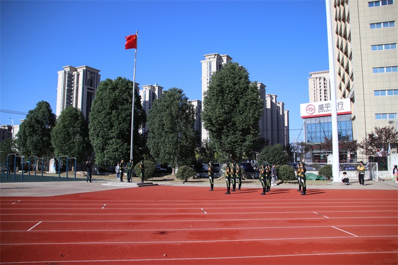 伴随着激越昂扬《义勇军进行曲》,五星红旗冉冉升起。全体肃立,齐唱国歌。嘹亮的歌声唱出了强国的骄傲与自豪,唱出了九中少年的蓬勃与朝气。
