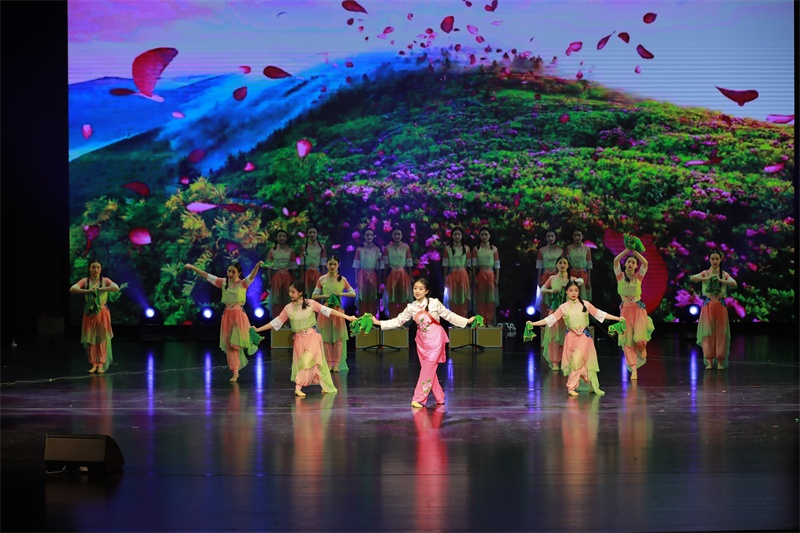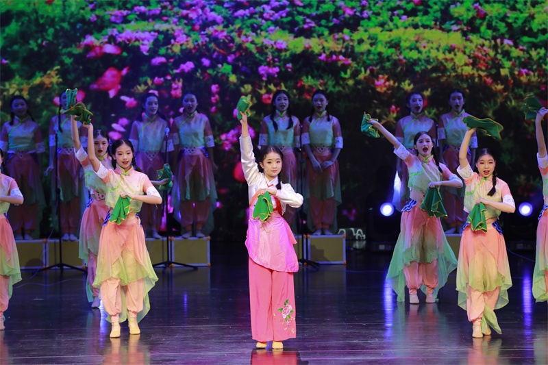 《庐剧花腔小调联唱》由“今个二十八”“一绣百花开”“望郎”“观画”四个选段组成,是我校庐剧社团老师根据皖西庐剧民间小调唱腔,进行创新编排而成,作品将歌、舞、说、唱融为一炉,既继承传统,又独具特色。《庐剧花腔小调联唱》曲调幽默风趣,场面热闹喜庆,地方风味浓郁。舞台上,庐剧社团的小演员们个个扮相俊俏,形象惟妙惟肖,嗓音纯净清澈,舞姿优美动人,把皖西庐剧的独特唱腔,展现得淋漓尽致。表演中,小演员们的表演形神兼备、生动传神,唱腔老练成熟,演技十分精湛,或调皮,或可爱,或俏丽,既有艺术性,又有观赏性,赢得了专家评委的高度赞赏和现场观众的阵阵掌声。