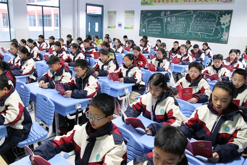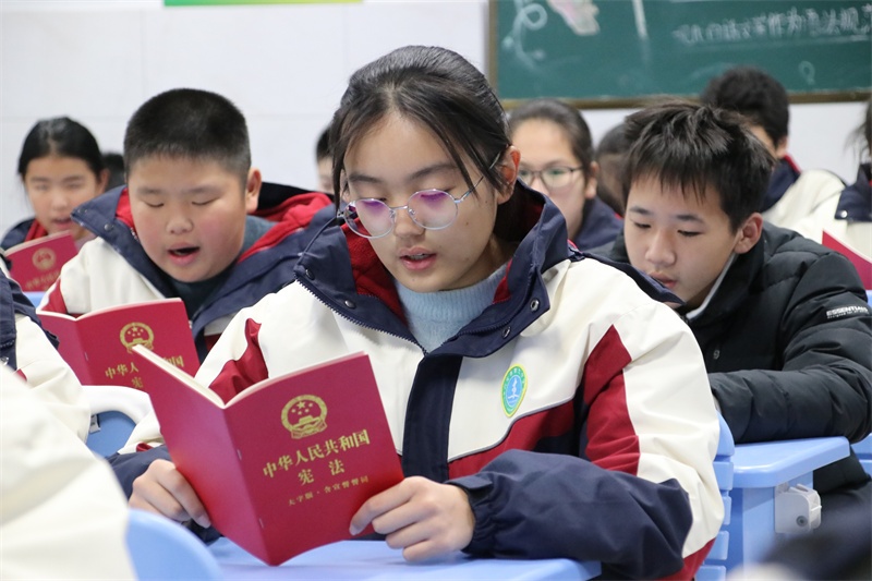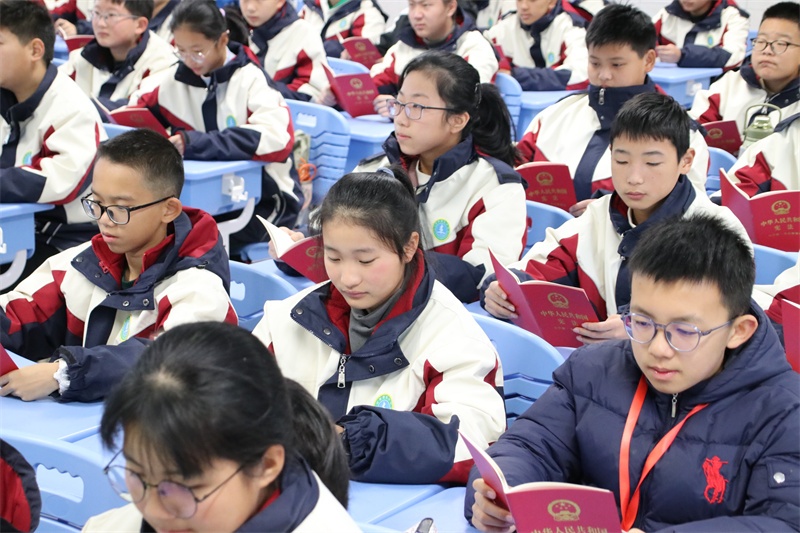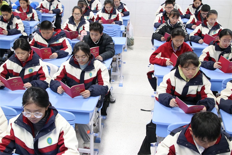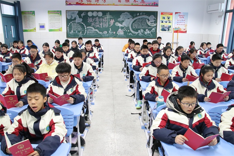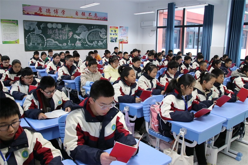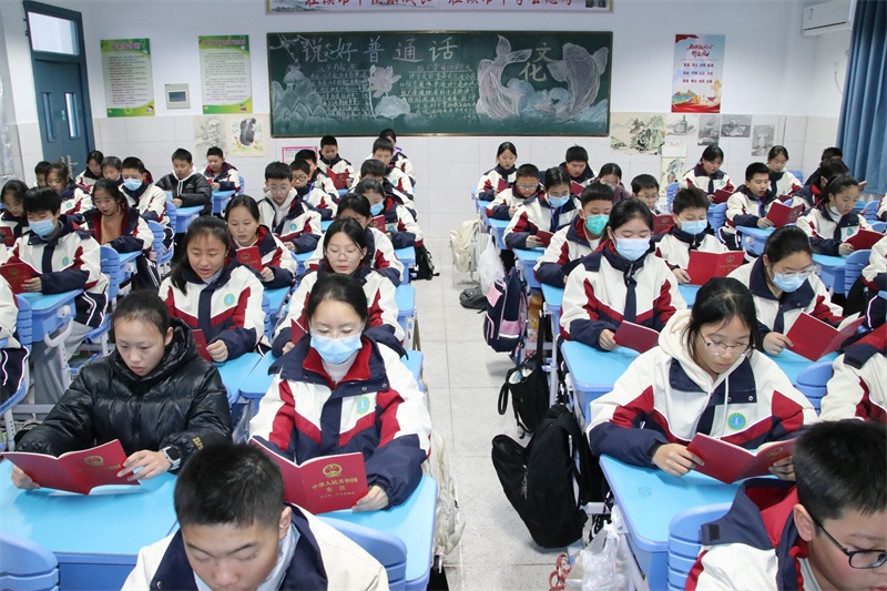 12月4日上午,在各位班主任的组织引导下,以自由读、齐读、领读等形式积极开展宪法晨读活动。同学们大声朗读宪法学习内容,精神饱满,情绪激昂,句句铿锵,声声入耳,字字入心,在潜移默化中得到了精神上的洗礼,思想上的升华。