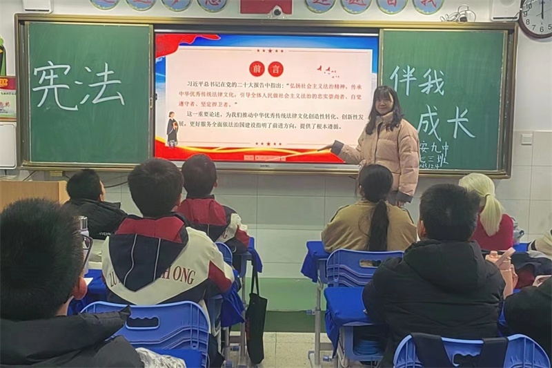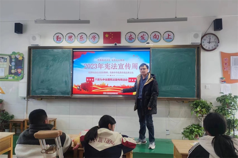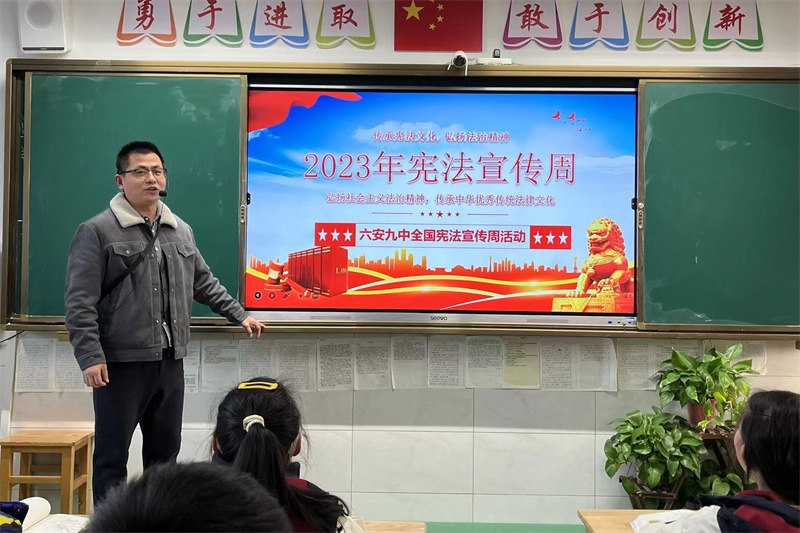 今年12月4日是我国第十个国家宪法日,12月4日至12月10日是第六个“宪法宣传周”。为进一步学习领会习近平新时代中国特色社会主义思想,全面贯彻党的二十大精神,紧密结合习近平法治思想学习和“八五”普法实施,大力加强宪法学习宣传,传承宪法文化, 弘扬宪法精神,在宪法宣传周到来之际,六安九中积极组织开展全国“宪法宣传周”暨第十个“国家宪法日”系列活动。