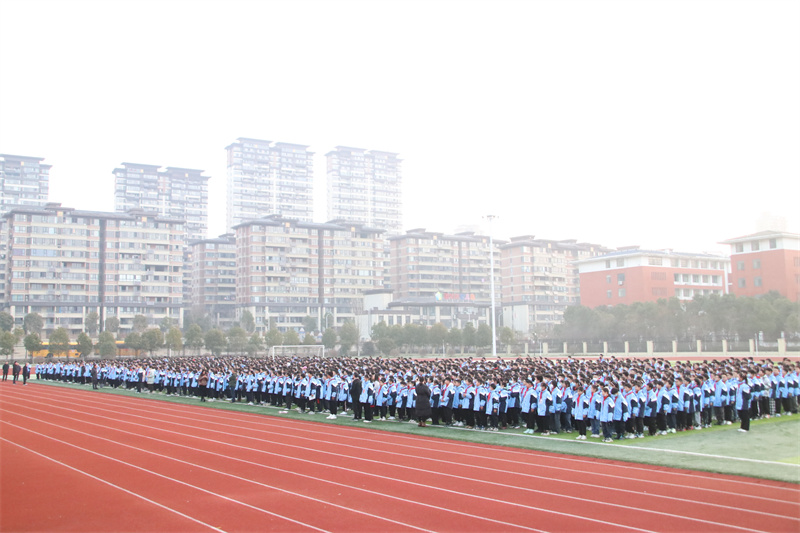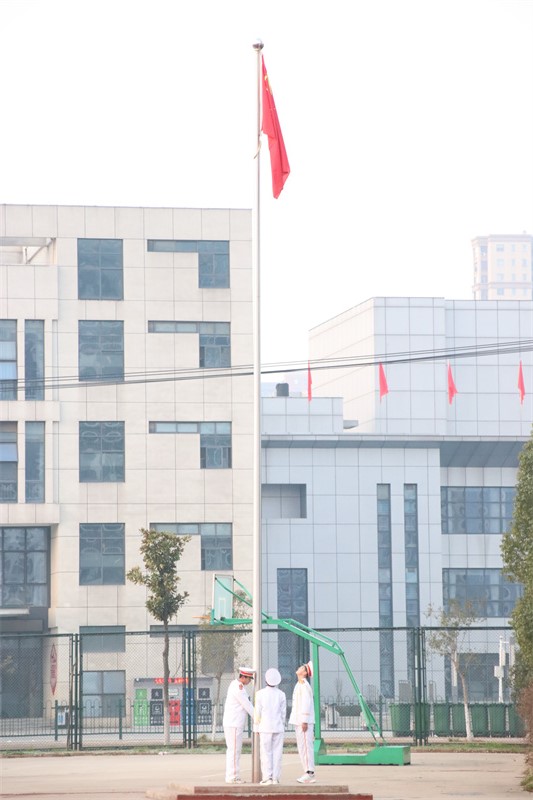 五星红旗在庄严的《义勇军进行曲》和激昂的国歌声中冉冉升起,鲜艳的五星红旗在空中飘扬,在这澎湃奋进的国歌声中,与国旗一起升起的,是全体师生对未来的美好憧憬与祝愿!