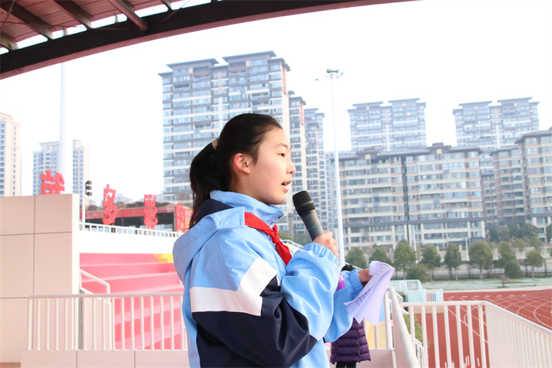 吕怡然同学发表了以“向着新学期迈进”为主题的演讲。土壤里的种子已经破土而出,正好奇地张望;垂柳的枝条已经长出新芽,正摇曳着春风;作为优秀学生代表,她倡议全体同学在新的学期做“守纪的模范”,做“学习的主人”,做“志存高远的人”,用热情拥抱未来,用青春谱写人生,做永不懈怠的追梦人。