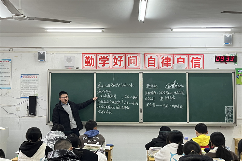六安九中洪礼扬老师精心准备的教学设计,灵动多变的教学方法,简洁准确的语言表达,突破了《理解权利和义务》这节课的重难点,使孩子们的思维不停跃动着,也给听课的老师们带来一场丰富的课堂盛宴。