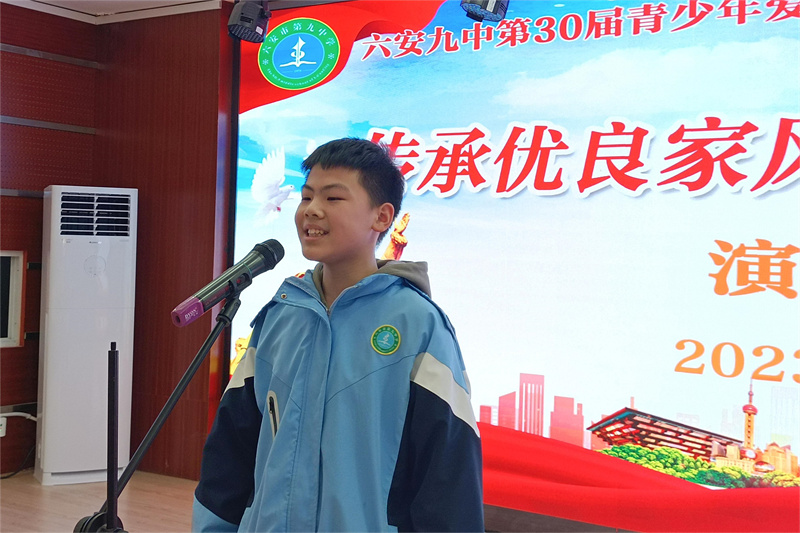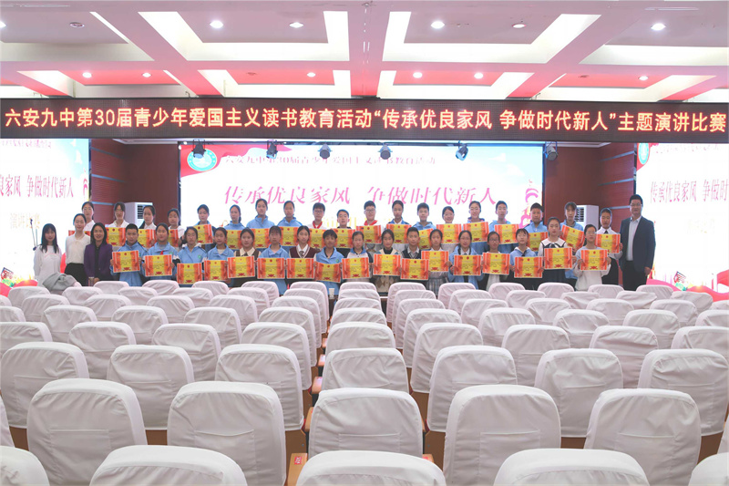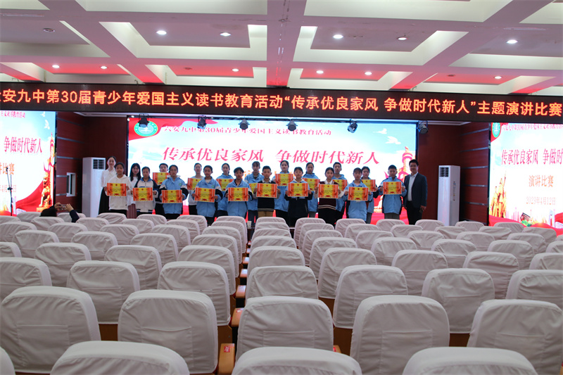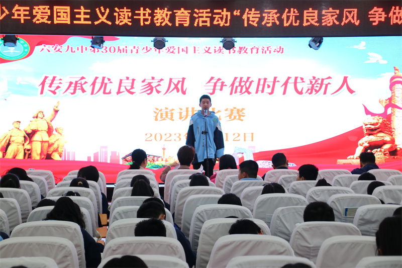 一情一理是成长,一词一句皆传承。六安九中高度重视青少年思想道德建设和爱国主义教育,扎实开展了征文比赛、演讲比赛等主题教育活动。学校将以此次活动为契机,积极引导广大青少年扣好“人生第一粒扣子”,争做优良家风的守护者、践行者、传承者,推动形成爱国爱家、相亲相爱、向上向善、共建共享的社会主义家庭文明新风尚,用实际行动传承良好家风,争做时代新人。(文:杨传广 图:查军柱)