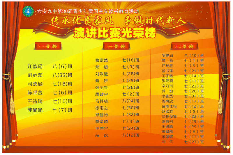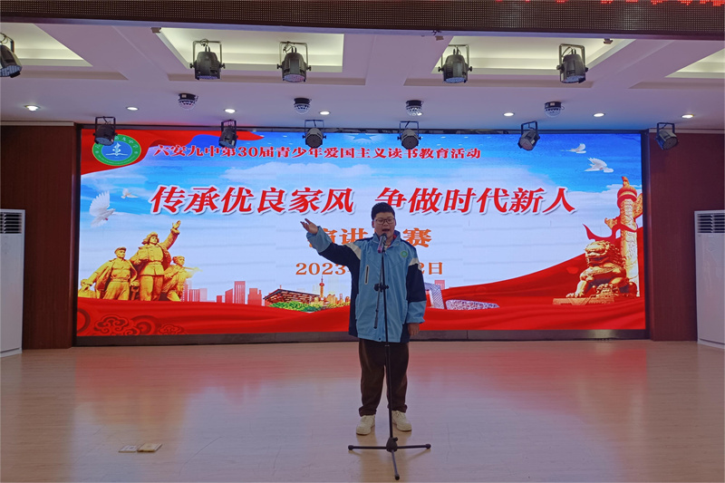 为学习宣传党的二十大精神,深入贯彻习近平总书记关于注重家庭家教家风的重要论述,引导学生继承和弘扬中华传统美德,培育和践行社会主义核心价值观,4月12日,六安九中举行第30届青少年爱国主义读书教育活动“传承优良家风 争做时代新人”主题演讲比赛。