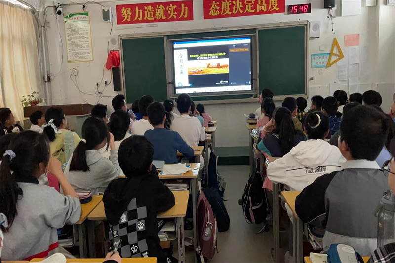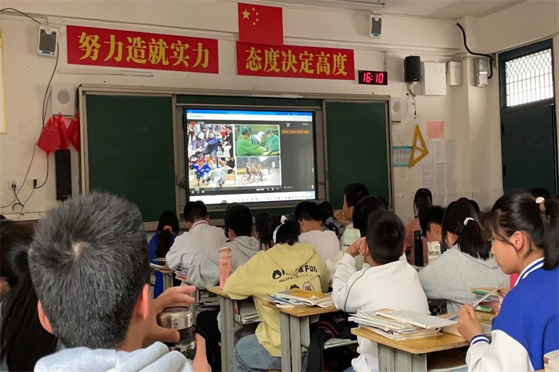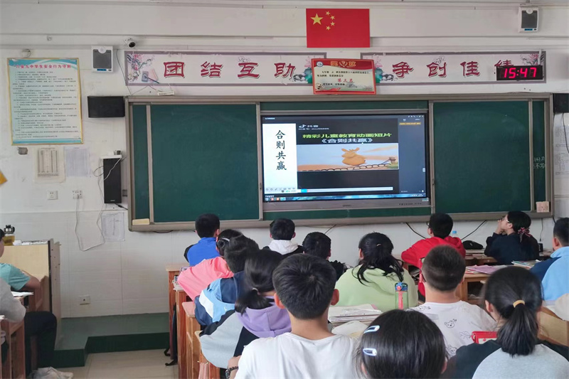 直播课上,陶萍萍老师循循善诱,娓娓道来。陶老师借助故事明理,潜移默化地育人。她用“三个和尚没水喝”的经典故事,让学生轻松明白人际交往中合作的重要性,教育学生做出正确的价值选择。陶老师调动影视素材,通过《中国机长》的精彩片段,教育学生明确合作共赢意义,归出合作成功的主要因素:信任、配合、主动、敢于承担责任、不去抱怨等。陶老师挖掘名人的榜样示范价值,播放《不惧挑战的中国人》中邓稼先、杨振宁、屠呦呦等名人事例,引导学生在合作中共赢,实现社会价值和个人价值的统一。