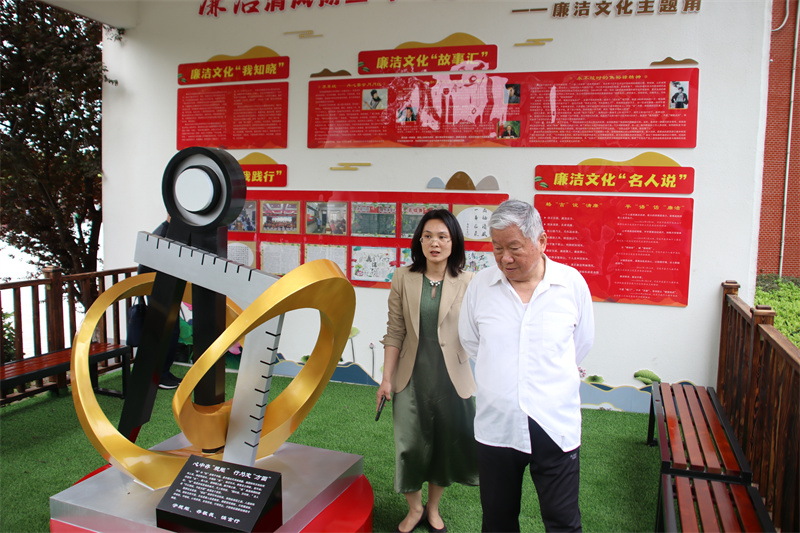 在学校解说员的引领下,汪永义一行在学校法治宣传教育展板、名人雕塑、操场、艺体馆、廉洁文化角、教学楼大厅、法治文化长廊、荣誉室等场所驻足观看。每到一处,关工委领导都一边聆听着讲解员的介绍,一边做深入地交流研讨。大家一致认为,六安九中青少年成法治宣传教育工作做得细致扎实,措施得力、形式新颖、成效良好,值得借鉴和推广。