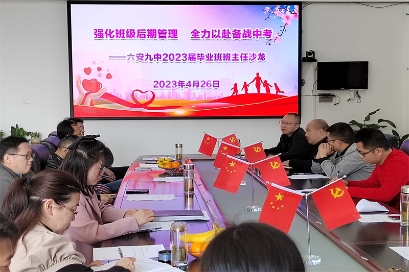 “水尝无华,相荡乃成涟漪;石本无火,相击而生灵光。”为强化毕业班后期管理,全力以赴备战中考,4月26日下午,六安九中组织开展2023届毕业班班主任沙龙活动。副校长霍朝晖、黄文海、李开军及全体九年级班主任参加了活动。九年级年级部罗来富主任主持本次活动。