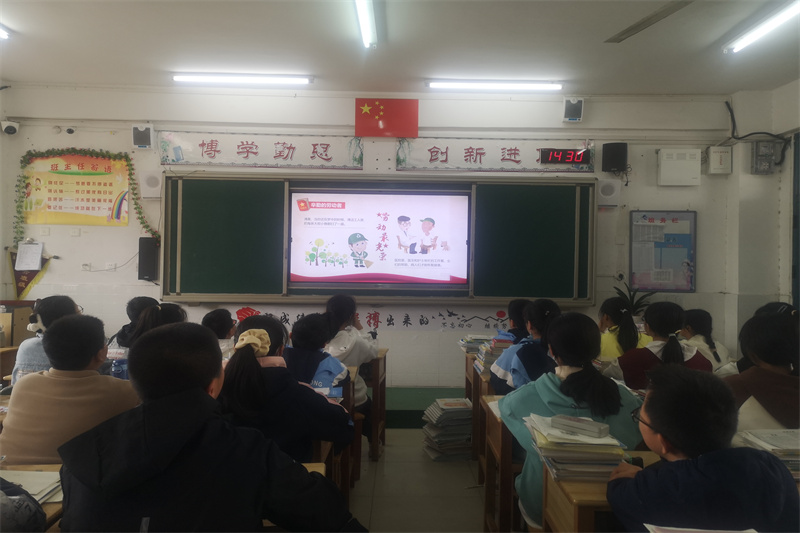 为全面做好劳动教育宣传工作,校团委动员各班开展“爱劳动,迎五一”的主题班会。班会上,各中队辅导员带领同学们认识了劳动节的由来,了解我国不同时代的劳模风采,启发大家关注身边的辛勤劳动者,深切感受老师们、爸爸妈妈们的辛苦工作。开展主题班会,激发了学生对劳动者的敬佩之情,树立了他们向劳模学习的决心,增强了学生热爱劳动的意识,从而树立凭劳动创造美好生活,积极主动参与劳动的意识。