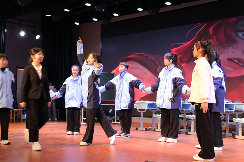 在赛前准备中,我校领导高度重视,积极筹备;何映月、陶萍萍、李宇涵三位老师根据日常教学生活中经历的真实故事,结合同学们在校园中遇到的实际心理问题,精心创编,研磨剧本,指导排练;师生团队克服困难、刻苦训练、团结协作、彼此鼓劲,充分利用课余时间反复推敲细节,认真揣摩演技。历经4个月的辛苦付出,终于在大赛的舞台上大放异彩,展现出九中学子振奋昂扬的精神风貌和蓬勃向上的青春风采,深深触动并感染了在场的每一位评委与观众。