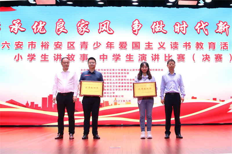 5月26日,在裕安区第30届爱国主义读书教育活动中学生演讲比赛决赛中,我校再创佳绩、喜获“大丰收”,学校荣获优秀组织奖。