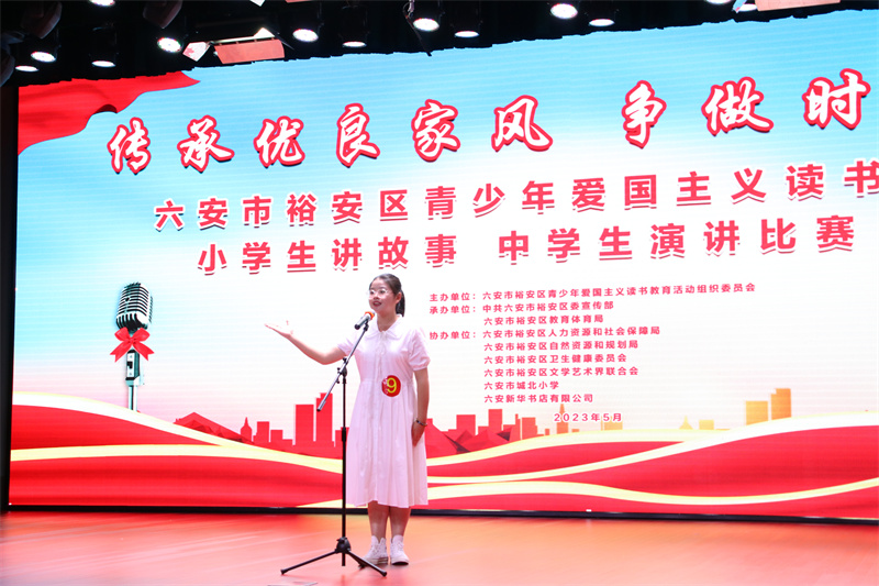 此次活动,以“传承优良家风 争做时代新人”为主题。在决赛的赛场上,我校小选手们紧扣活动主题,热情洋溢、精神饱满,用真挚的语言、真切的情感、真实的事例生动诠释了自己对家风家训的理解。《家风悄然润泽 少年一朝花开》《涵养好家风 淡然如花香》《传承中华好家风 不负时代筑芳华》《弘扬中华美德 传承良好家风》《沐浴优良家风 助力茁壮成长》《赓孝亲 润人心》……我校小选手们轮番上场。舞台上,他们镇定自若,声情并茂,落落大方,时而娓娓道来,时而深情款款,时而激情昂扬,充分展现了六安九中学子朝气蓬勃的精神风貌和奋发向上的青春风采,赢得了现场观众和评委老师们的阵阵掌声。