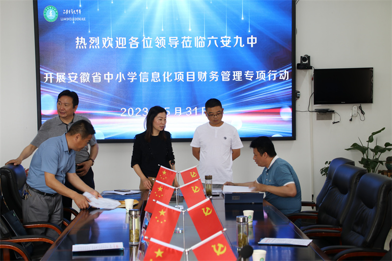 5月31日,由淮南市教体局党委委员、副局长洪光社率领的省检查组一行,莅临六安九中开展中小学信息化项目财务管理专项行动检查。六安市委教育工委委员、市教体局总督学赵耀兵等市、区有关部门领导陪同。六安九中校长李艳热情接待,并向检查组汇报了学校相关工作开展落实情况。