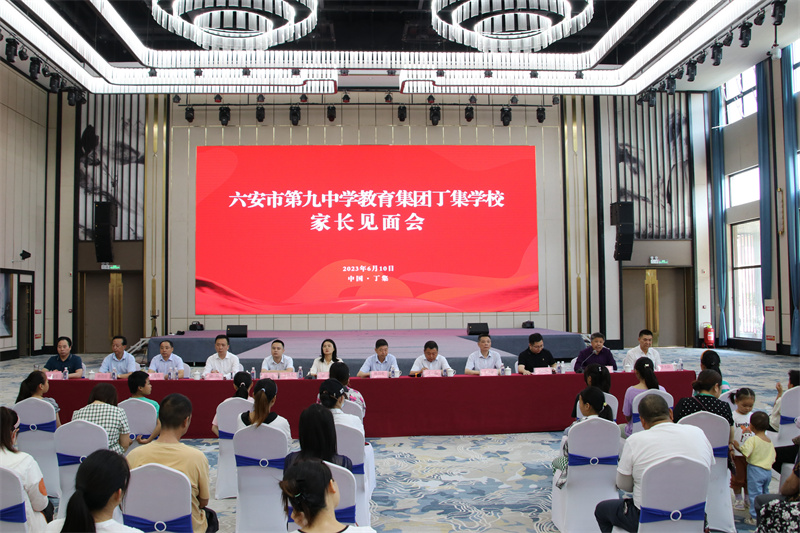 时维仲夏,花繁树荣。在这美丽的季节,怀着对优质教育的期盼,6月10日上午,六安市第九中学教育集团丁集学校家长见面会在丁集婚纱小镇秀场隆重召开。丁集镇党委书记王磊、区教体局总督学陈功有、六安九中校长李艳、丁集中心校校长刘余生、丁集学校校长霍杰、安徽浙东集团总裁王世斌及副总裁徐翔等领导出席会议。丁集镇党委、政府领导,企业家代表,丁集镇小学毕业班学生家长,共300余人参加见面会。会议由丁集镇党委副书记、镇长陈飞主持。
