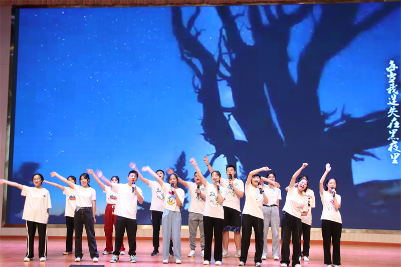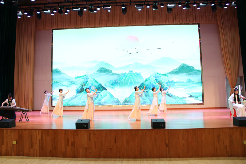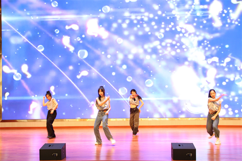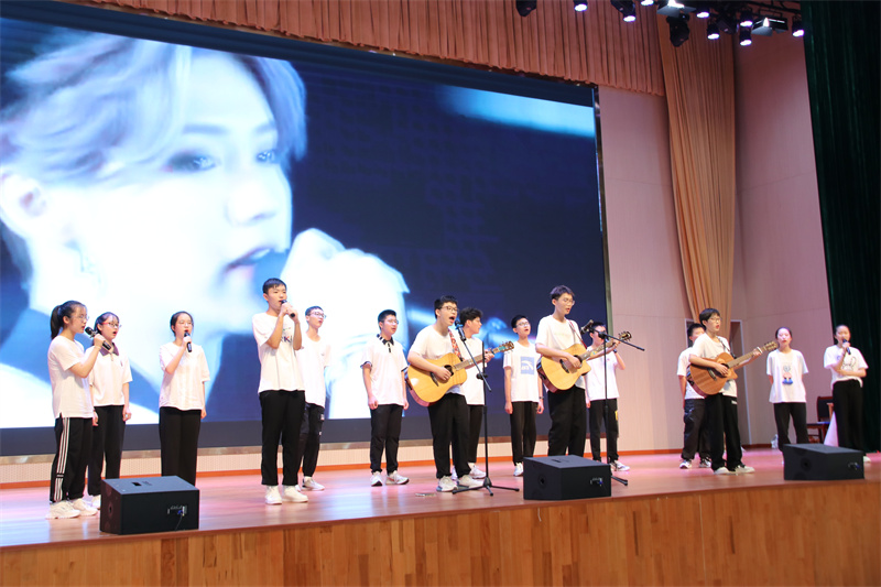 青春的魅力在这里挥洒,青春的激昂在这里飞扬。毕业典礼上,师生同台献艺,表演节目精彩纷呈,现场气氛高潮迭起。开场舞《hype boy 》描摹了青春的激情,传递了青春的力量;配乐诗朗诵《告别母校》表达了同学们对母校、对恩师的无限感激之情;小合唱《明天会更好》《夜空中最亮的星》、吉他弹唱《我们的明天》、器乐合奏《西楼别序》、现代舞串烧……轮番上演,精彩纷呈,赢得全场师生的阵阵掌声和欢呼声。